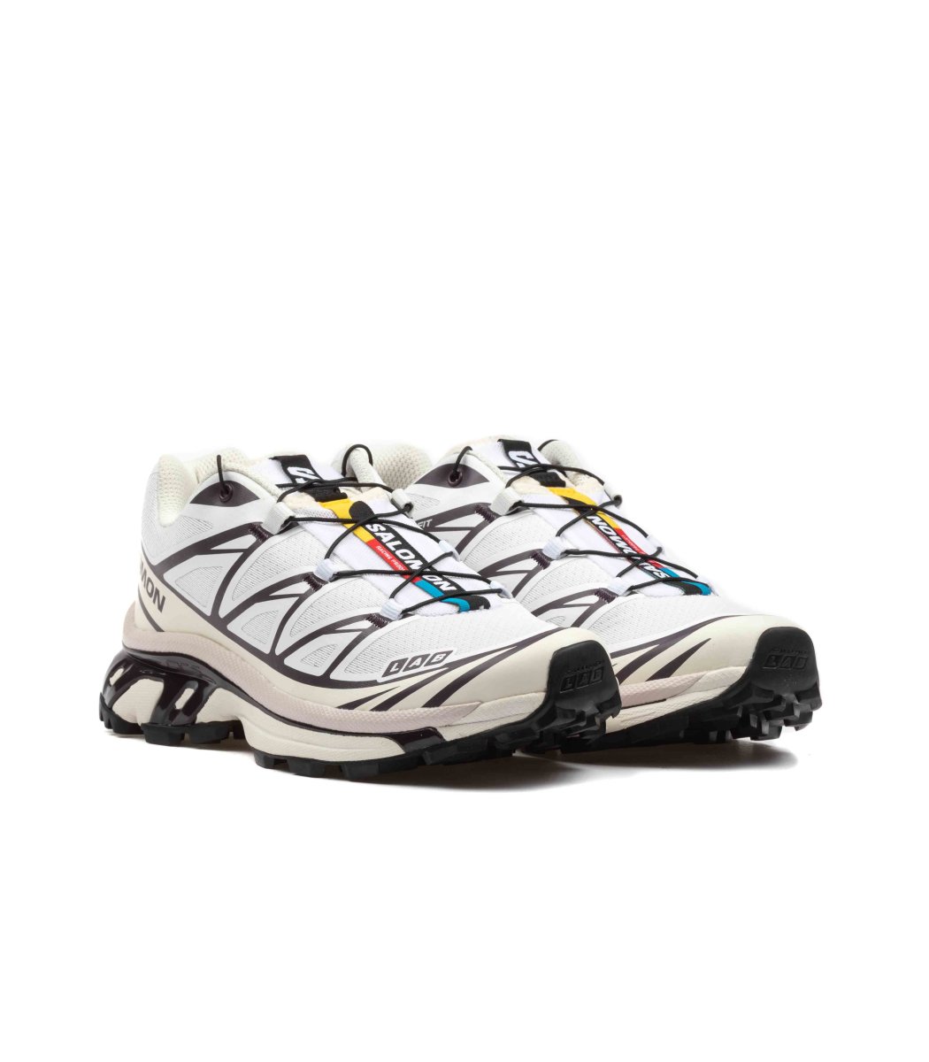 Icona trail diventata fashion essential. Le Salomon XT-6 in colorazione White / Vanilla Ice / Plum Perfect uniscono performance e stile contemporaneo. La tomaia tecnica in mesh rinforzato offre leggerezza e supporto, mentre l’intersuola con tecnologia Agile Chassis™ e la suola Contagrip® assicurano comfort e stabilità anche in città. Un mix perfetto di estetica sportiva e design urbano.