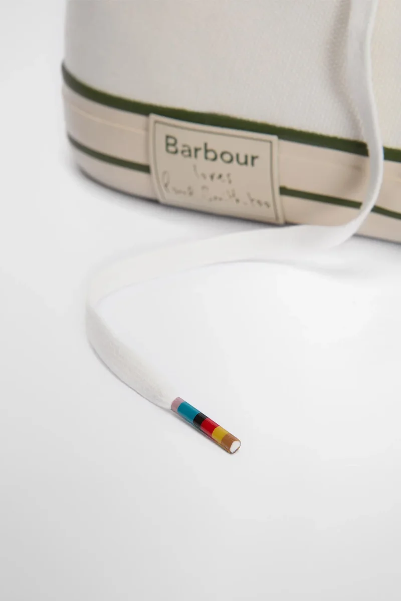 Le scarpe da tennis da uomo di Paul Smith Loves Barbour ripropongono una classica calzatura da tutti i giorni in una versione più audace dal fascino agreste. Realizzate in robusta tela con suola vulcanizzata per garantire un comfort ottimale tutto il giorno, sono rese più sbarazzine dalle mosche artificiali ricamate a mano, che strizzano l’occhio all’heritage outdoor di Barbour. L’inconfondibile linguetta intessuta a righe di Paul Smith regala un vivace tocco di colore nella zona del tallone, mentre il dettaglio con anello a D in metallo rende omaggio all’iconica giacca Spey di Barbour. Impreziosite da un’etichetta con doppio logo sul lato, queste scarpe racchiudono tutto il fascino dello stile britannico.