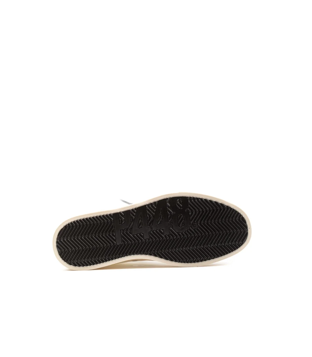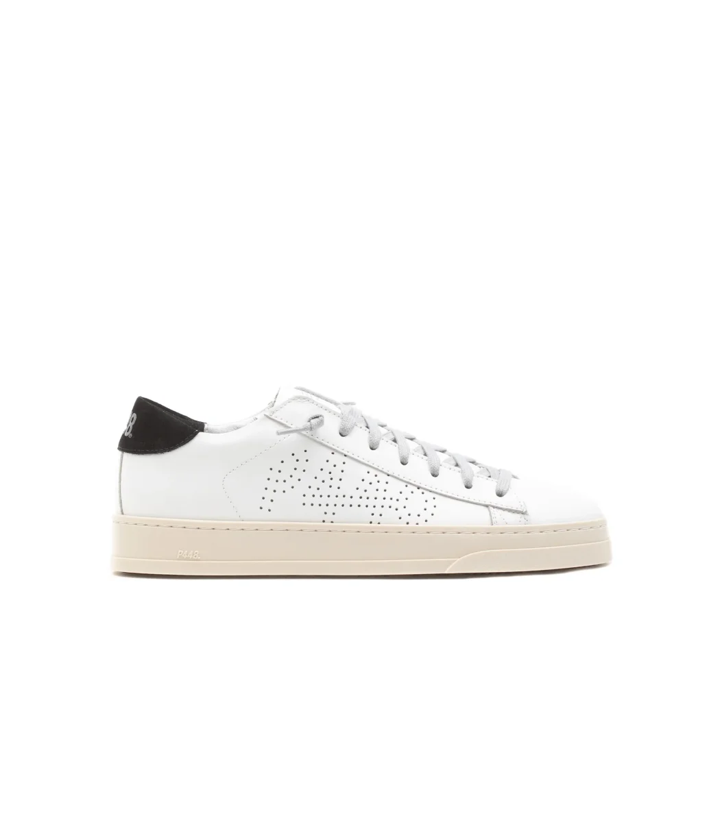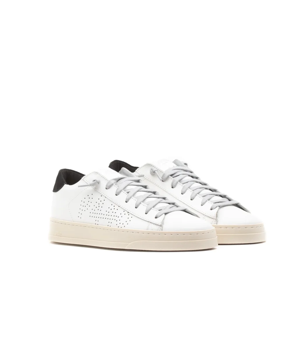 Sneakers P448 colore bianco da donna con dettaglio nero sul tallone tomaia in morbida pelle e suola in gomma Made in Italy.