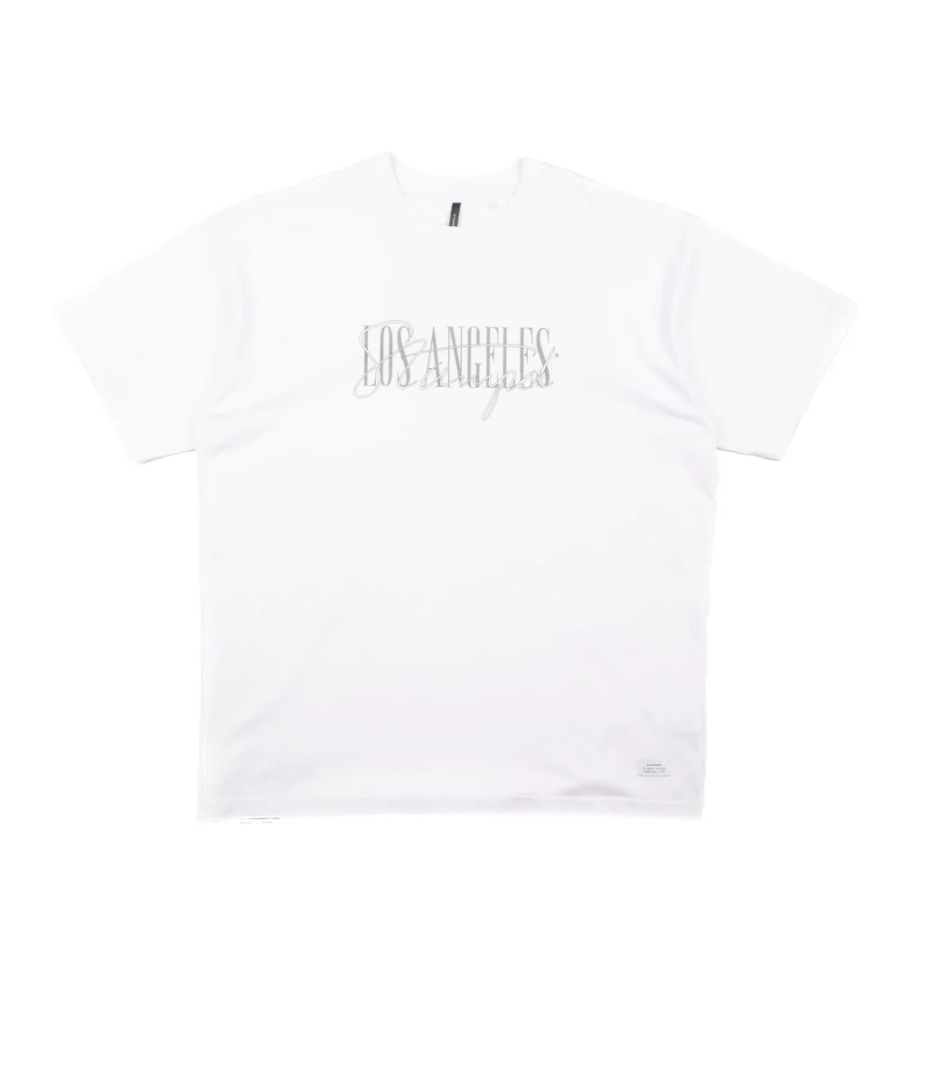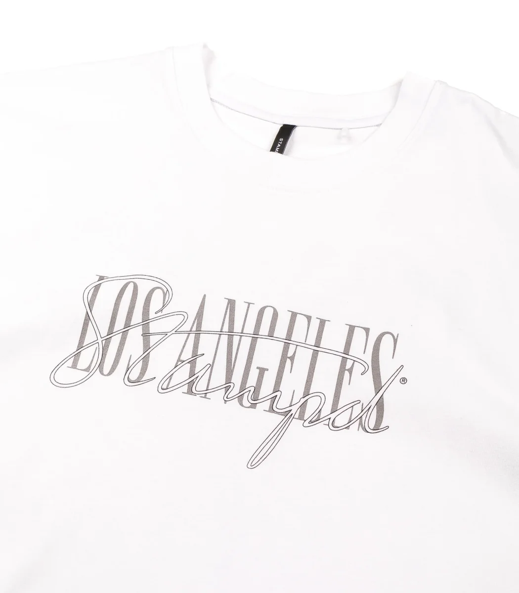 T-shirt manica corta con font stampato frontale, cotone morbido vestibilità regolare.
