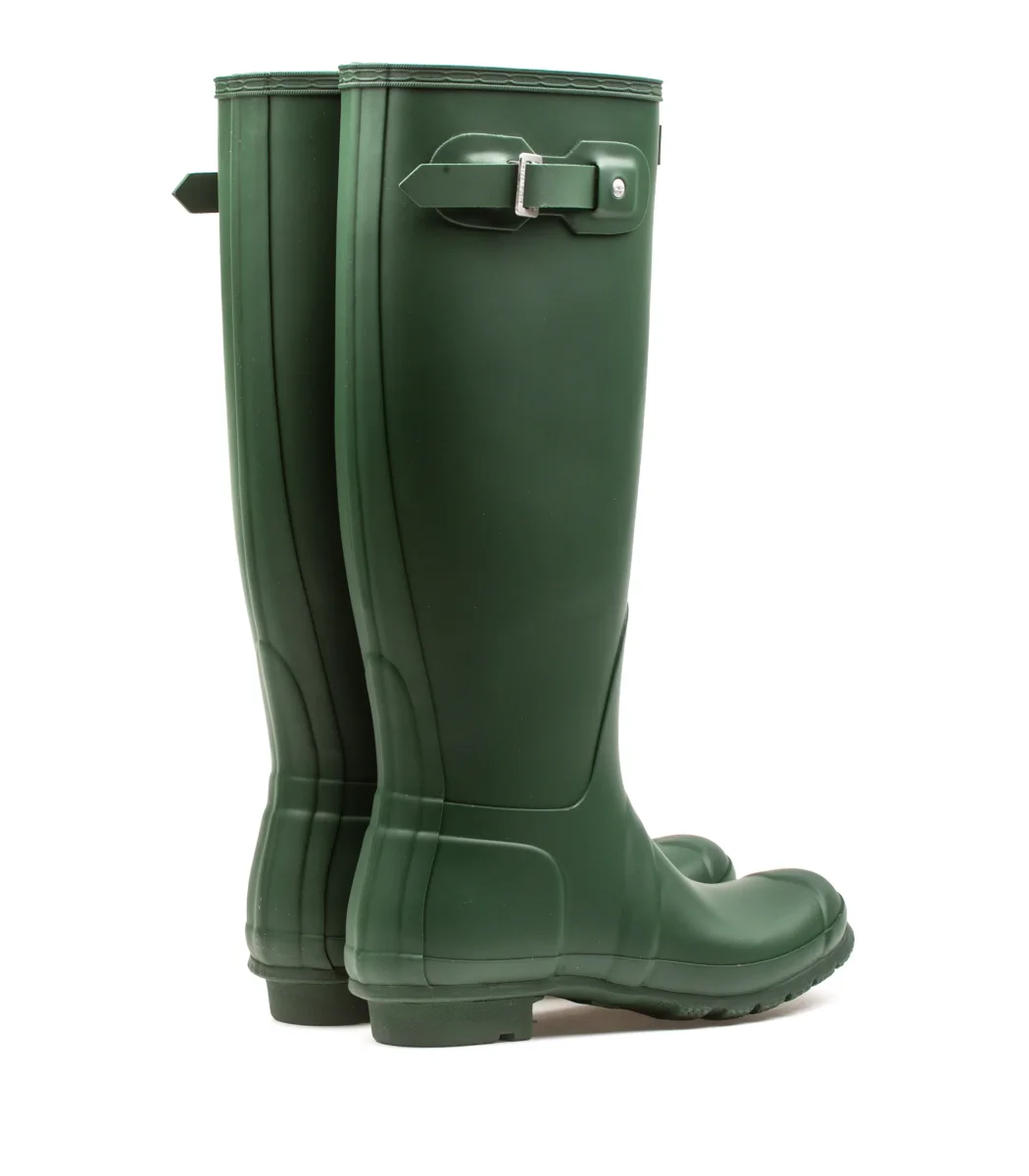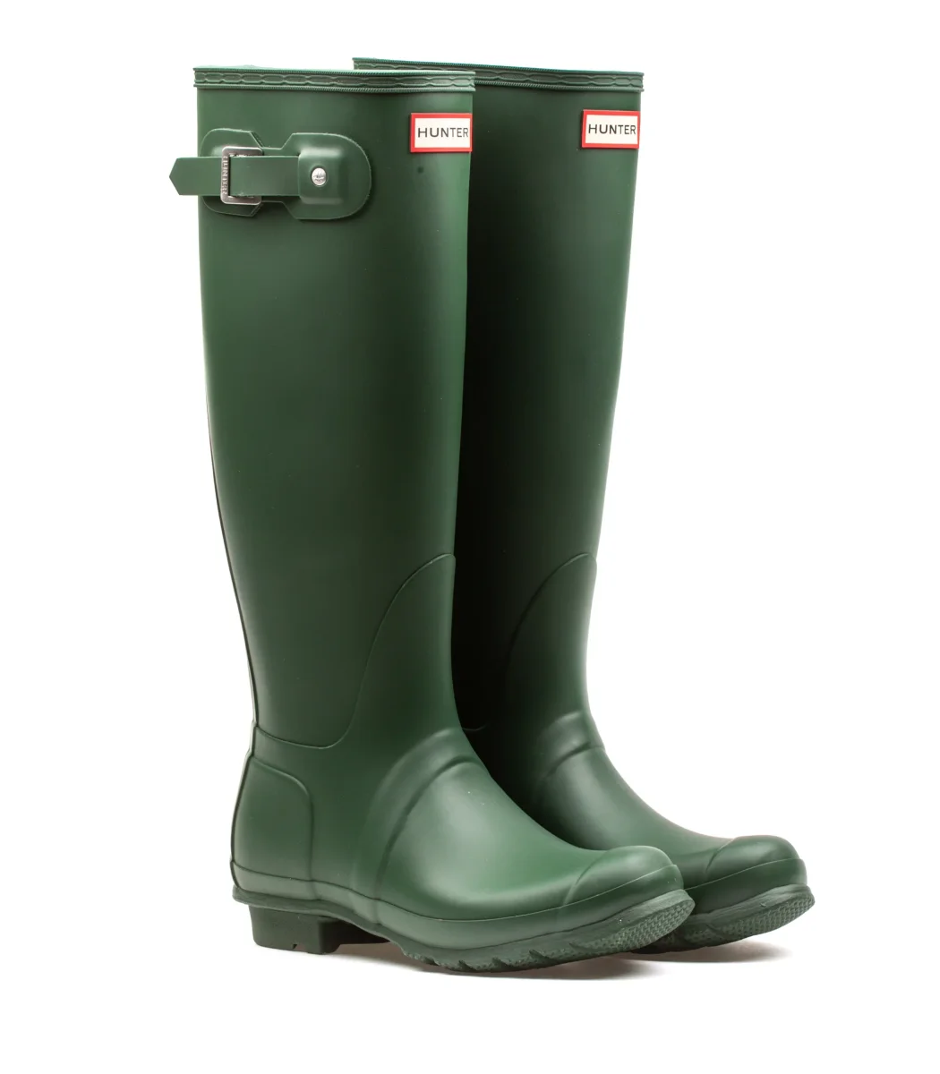 Stivale Hunter colore verde da donna interamente in gomma con dettaglio sul gambale 100% resistente all’acqua.