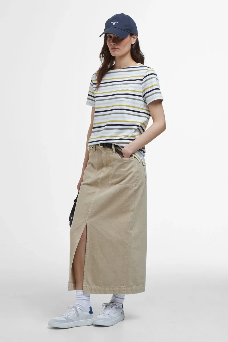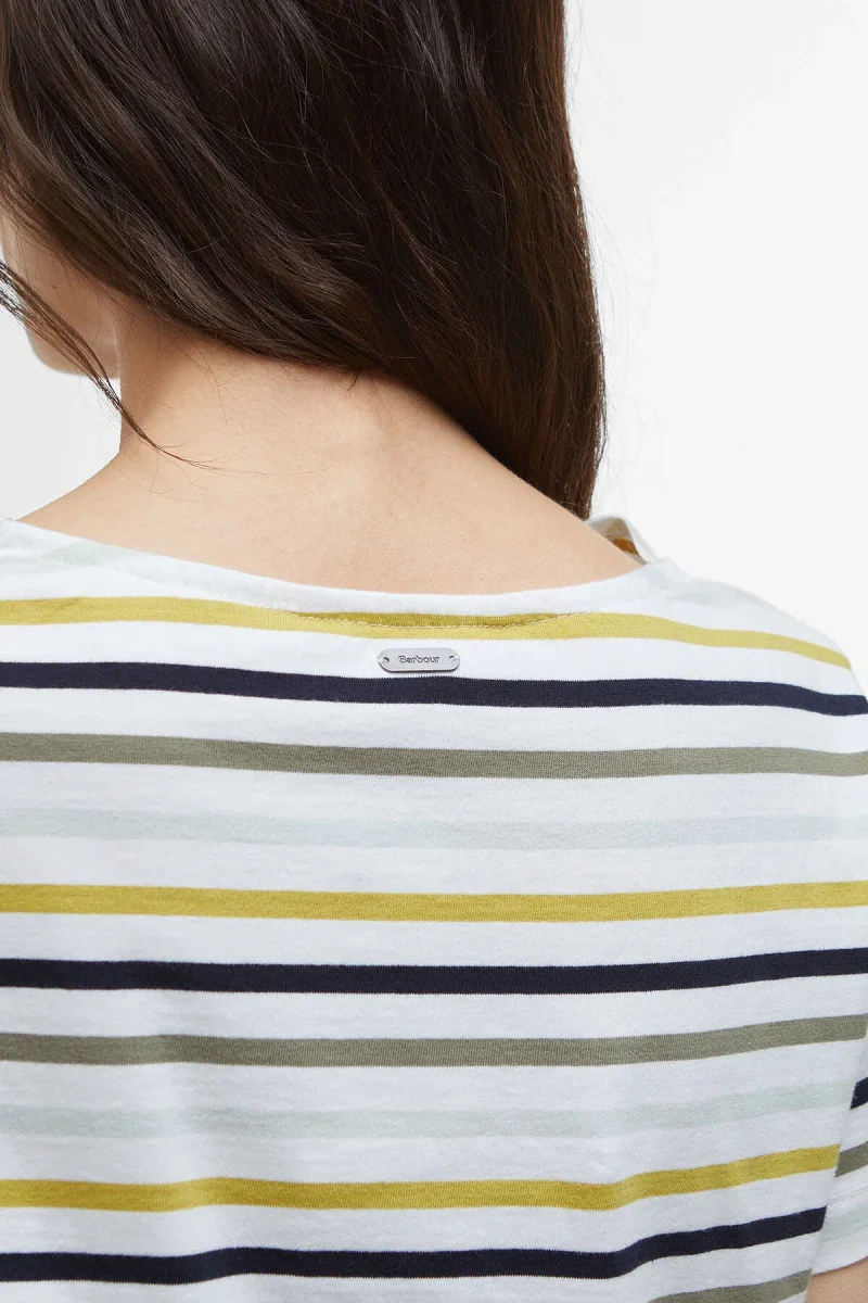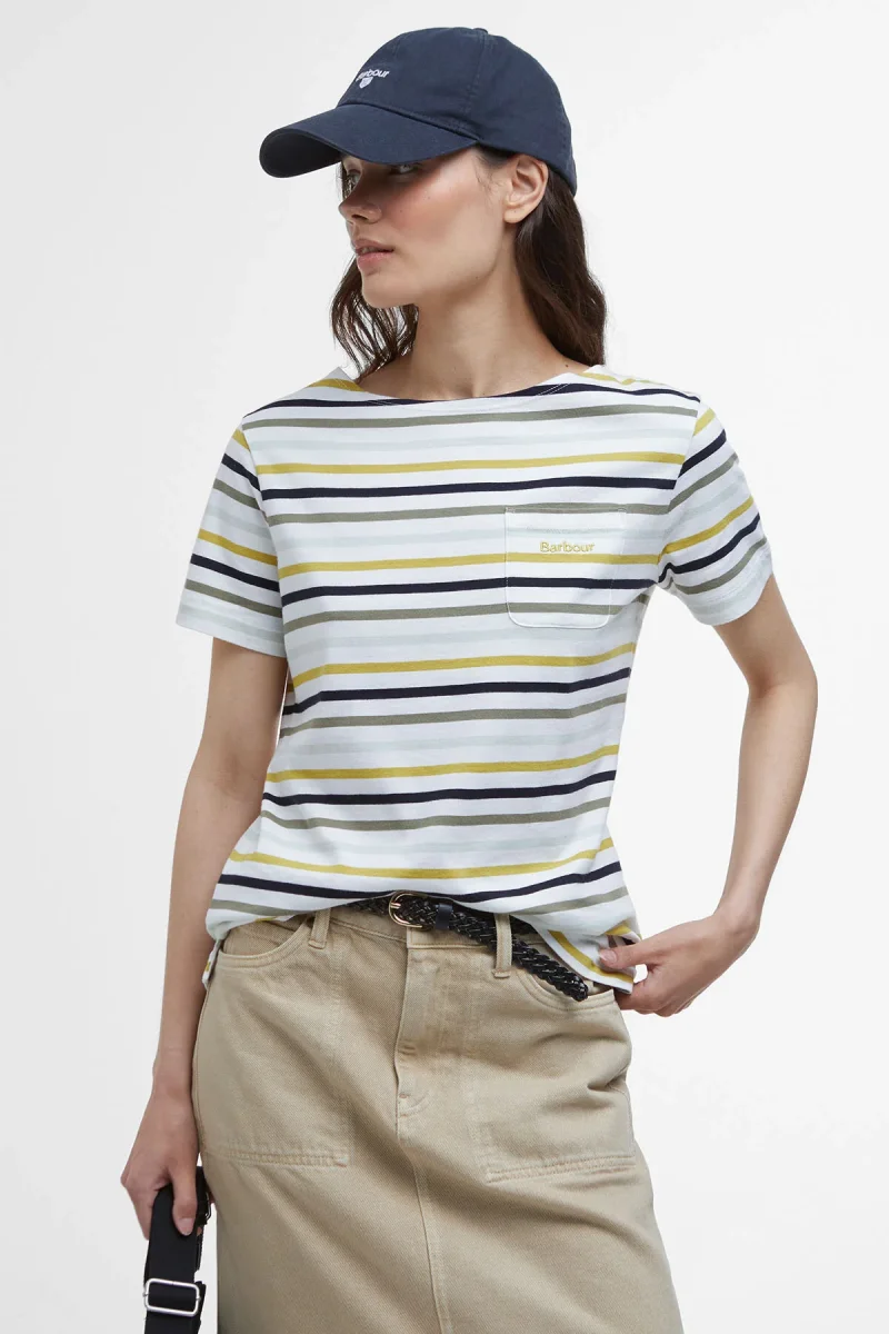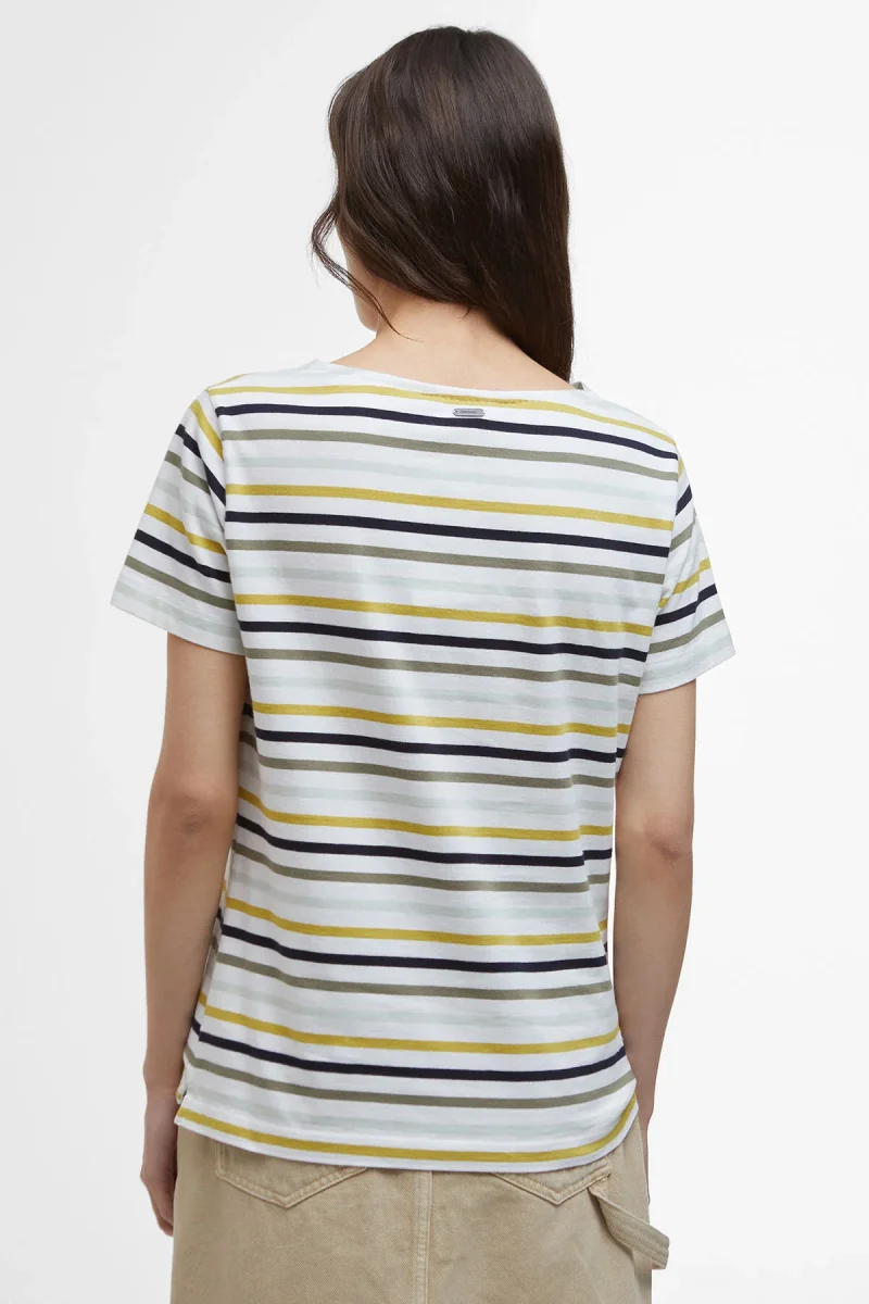 Rivisitazione in chiave contemporanea delle classiche maglie a righe in stile nautico, la T-Shirt Bradley firmata Barbour è caratterizzata da righe a blocchi multicolor che conferiscono al capo il giusto tocco di modernità. Perfetto da abbinare a un paio di jeans o chino per un look elegante e disinvolto, il capo è impreziosito da un piccolo logo ricamato sul petto a sinistra.