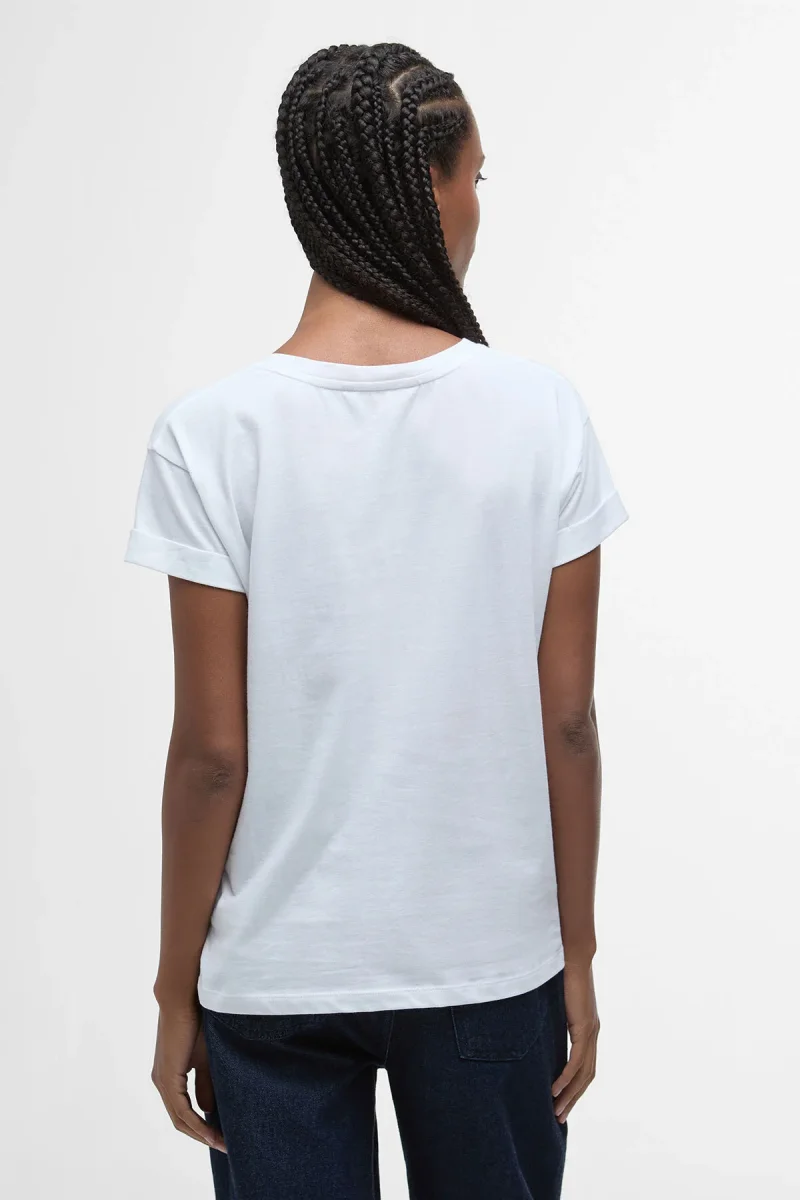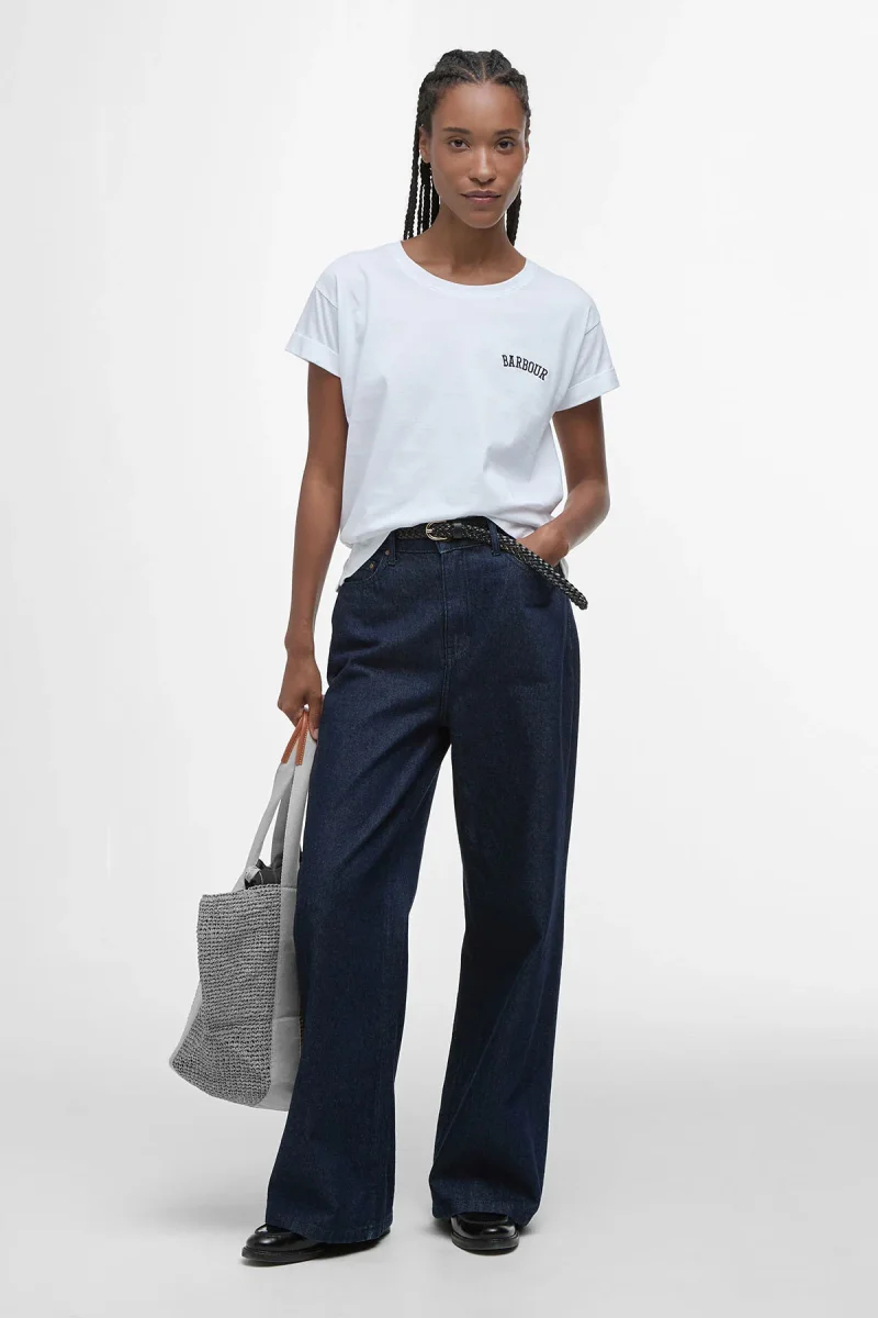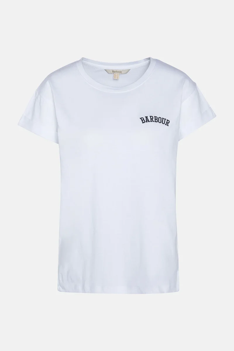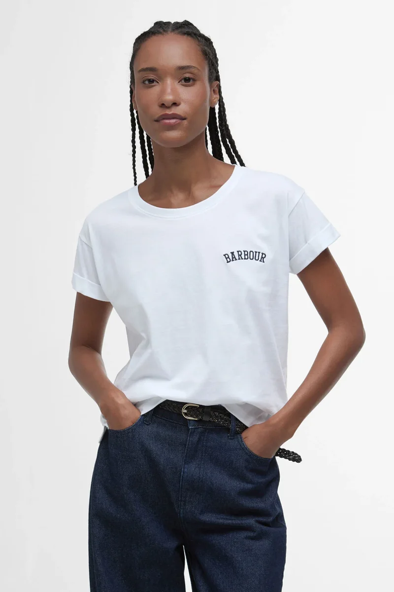 Un guardaroba non è completo senza una T-shirt dalla grafica audace che arricchisce i look di tutti i giorni. La T-shirt a girocollo Kenmore presenta un logo Barbour in stile varsity sul petto, che le conferisce un look davvero inconfondibile. Perfetto da abbinare a un paio di jeans, questo modello è destinato a diventare un must-have di cui non potrai più fare a meno.