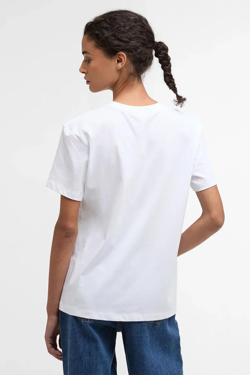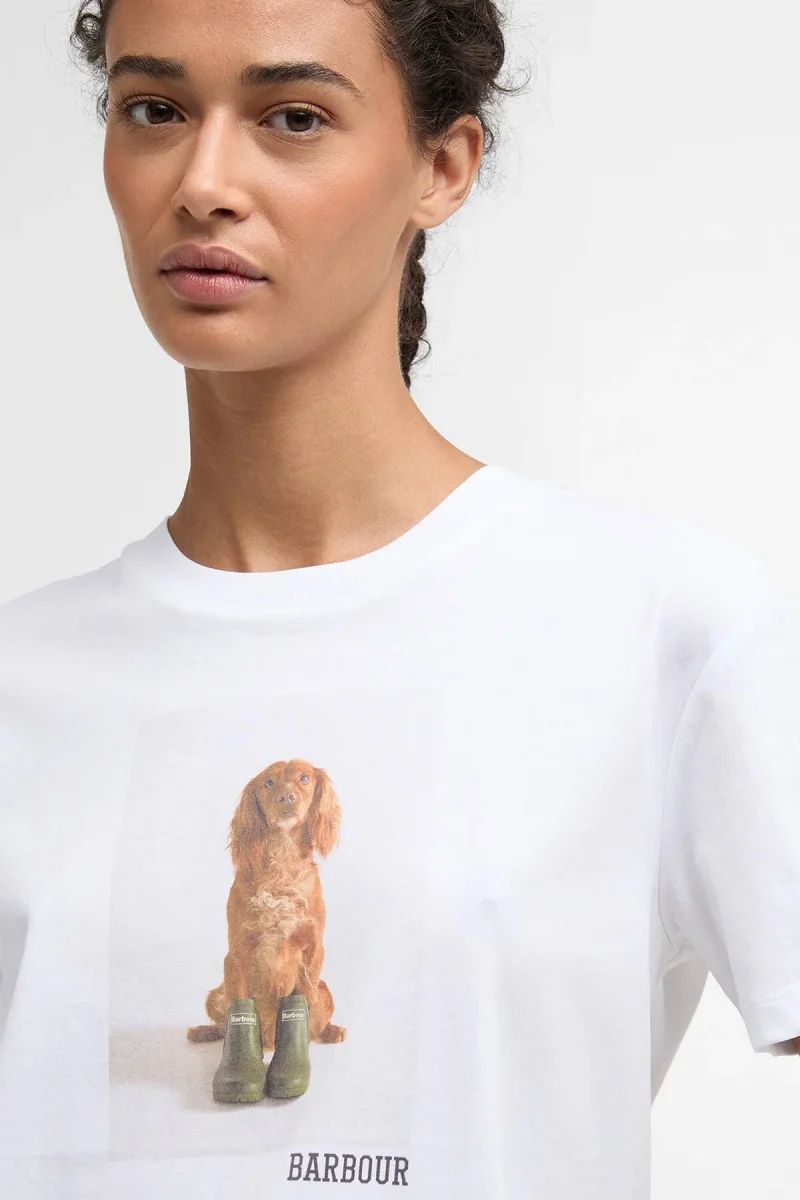 La T-shirt con stampa Bedale di Barbour ripropone in chiave più sbarazzina un classico capo casual. Realizzato in cotone morbido e traspirante, questo modello dalla vestibilità comoda presenta un’affascinante stampa con cane di Barbour sul petto che celebra l’heritage rurale del brand con un tocco di carattere. Perfetta per i weekend di relax o da indossare sotto la tua giacca preferita, è un capo semplice ma con grande personalità.
