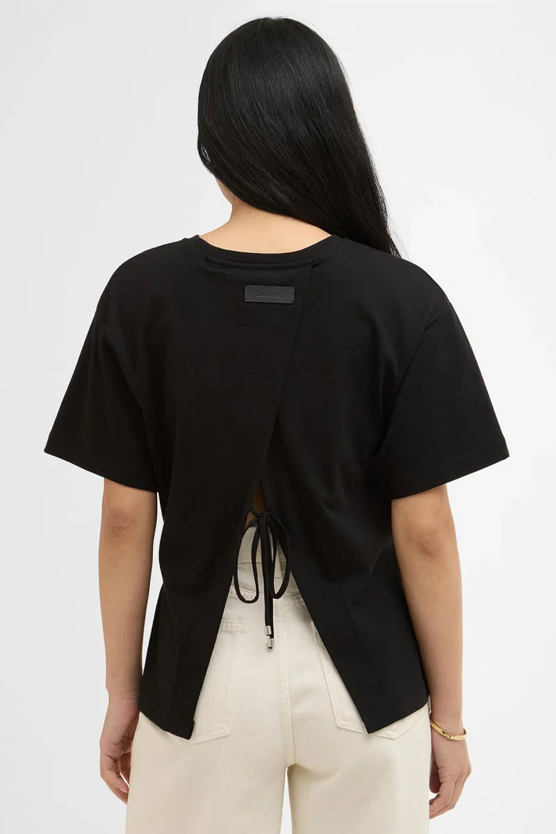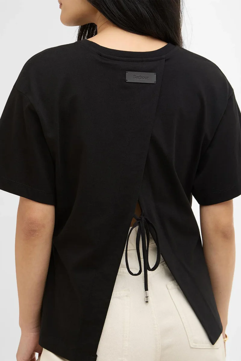 La T-shirt Liza di Barbour ripropone un capo classico del guardaroba in chiave più elegante e femminile. Realizzato in morbido cotone, presenta discreti dettagli con pieghe in vita per offrire una silhouette aderente che esalta la figura. Impreziosita da una splendida cintura da annodare sul retro, questa T-shirt elegante offre il perfetto equilibrio di comfort e stile ricercato.