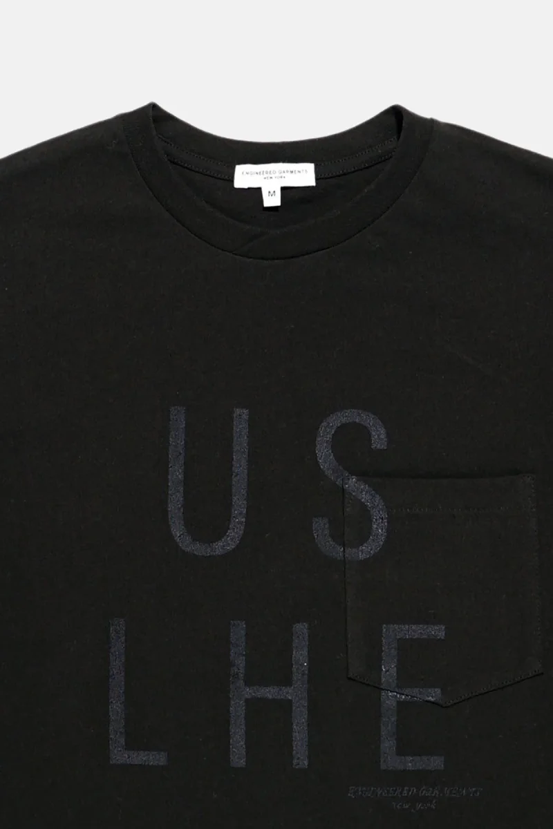 La t-shirt di Engineered Garments ha una vestibilità regolare ed è realizzata in 100% cotone. Il colletto a coste è leggermente sovrapposto sul davanti. Una stampa originale sul fronte e una tasca applicata sul petto completano il look.