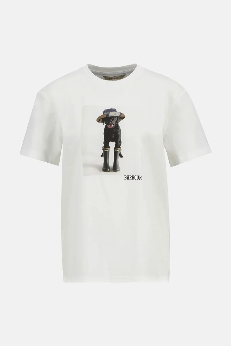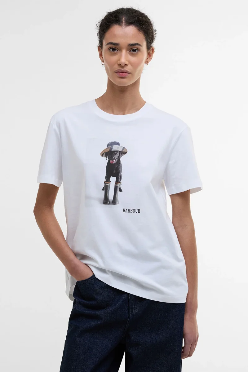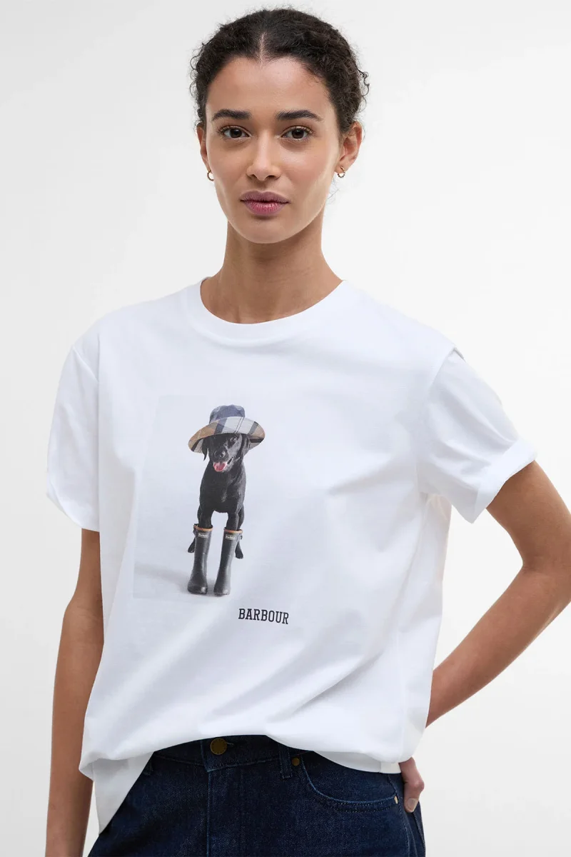 Fatti notare indossando la T-shirt con stampa Woodrow di Barbour. Caratterizzato da una stampa raffigurante il cagnolino di Barbour, questo capo è perfetto per aggiungere un tocco di personalità a qualsiasi outfit. Abbinalo a un paio di jeans e sneakers per creare un look che non passa inosservato.
