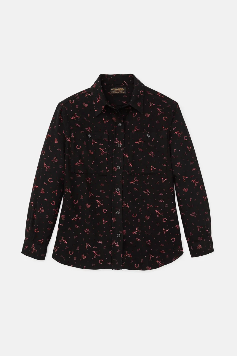 La nostra camicia Rangeland in flanella di cotone spazzolato da 156 g regala una morbidezza eccezionale sulla pelle. Di peso medio, e perciò ideale per essere indossato tutto l’anno, il tessuto rimanda alle flanelle vintage degli anni ‘70 ed è indubbiamente destinato a conquistare un posto d’eccezione nel tuo cuore. La chiusura anteriore, le tasche sul petto e i polsini sono chiusi da dei bottoni personalizzati. Colletto francese classico.