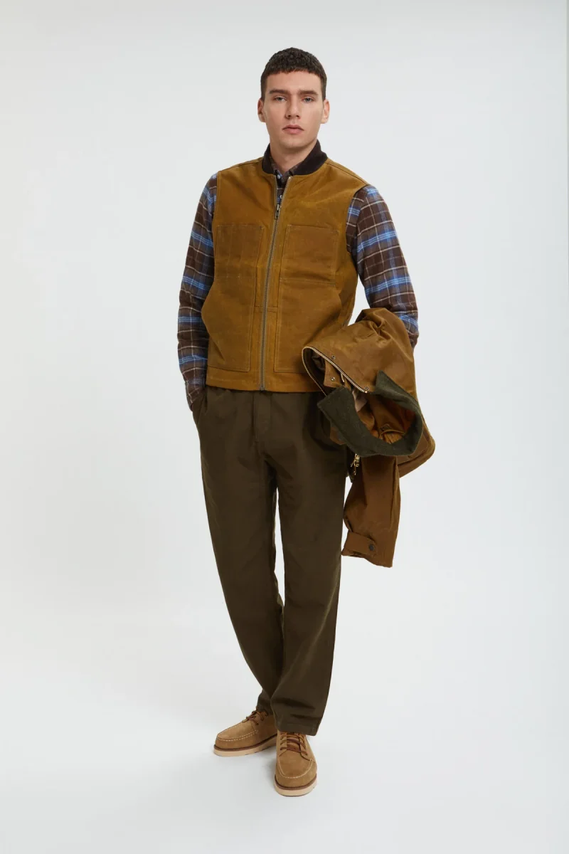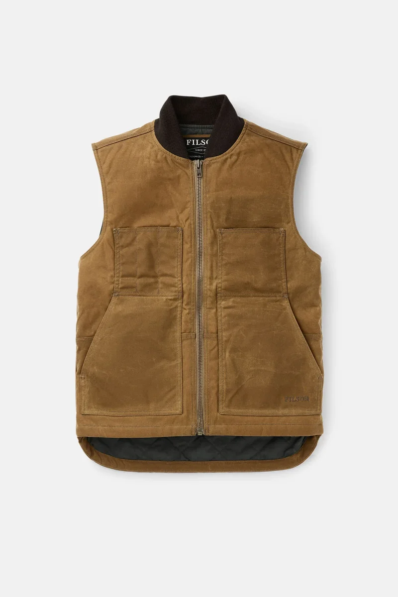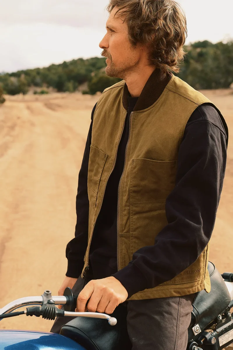 Il nostro gilet da lavoro isolante in tessuto Tin Cloth combina il nostro leggendario cotone cerato e l’innovativo isolante PrimaLoft® per uno strato polivalente con le caratteristiche dei nostri gilet preferiti degli ultimi tre decenni. Il guscio è realizzato in tessuto Tin Cloth con finitura a olio, con radici che risalgono alle piovose foreste del Pacifico nord-occidentale degli anni ’20 e una comprovata capacità di resistere alle condizioni proibitive incontrate da forestali, cacciatori e artigiani. La tela anatra a trama fitta costituisce una barriera quasi impenetrabile alle spine, ai rovi e all’abrasione e, grazie alla sua robusta finitura cerata, si scrolla di dosso acqua e fango senza senza problemi. L’isolamento PrimaLoft® Gold da 60 g fornisce un calore leggero che riproduce la piuma d’oca, ma a differenza di quest’ultima, mantiene il calore anche se si bagna. Questo resistente gilet è foderato con il nostro caratteristico tessuto Cover Cloth con finitura a secco per un comfort naturale e il suo orlo a goccia mantiene coperti durante i piegamenti o le arrampicate. La cerniera frontale scorrevole è in metallo per un’affidabilità garantita. Il colletto a costine è una speciale miscela di lana, per una sensazione di calore che solo la lana può offrire. Le tasche sono prese dal nostro gilet di lana più venduto: tasche scaldamani foderate in flanella, tasche a scomparsa sul petto e tasche multiuso a fessura. Il gilet da lavoro in tessuto Tin Cloth isolante: realizzato con i migliori materiali, ideato per il lavoro e altrettanto funzionale sul campo quanto in cantiere.