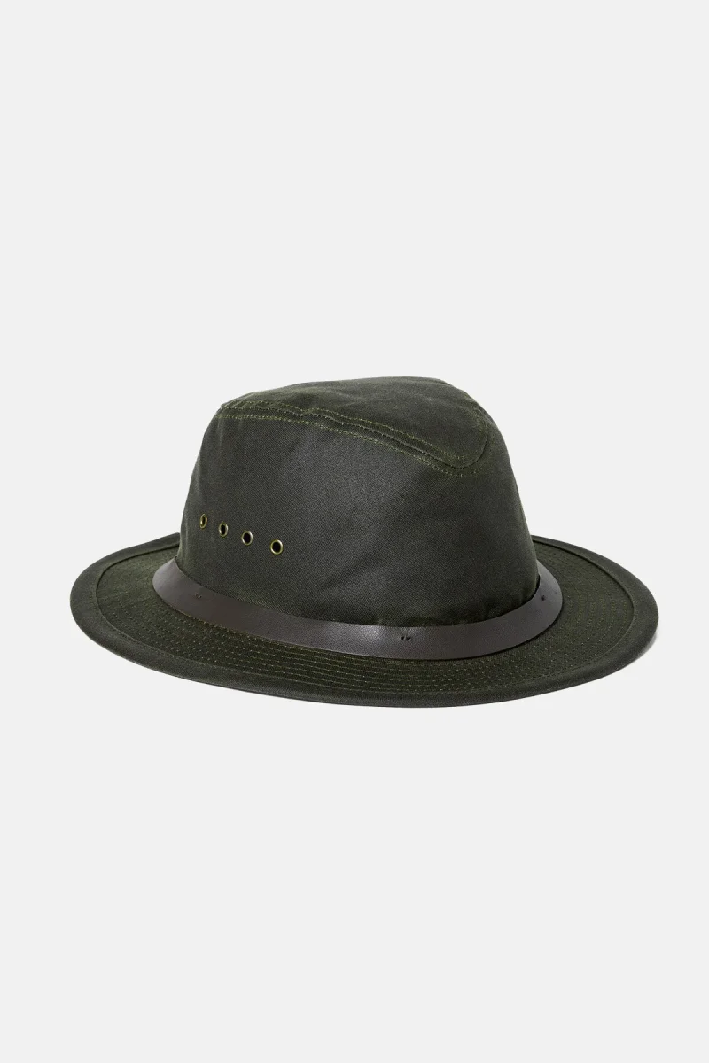 Per le attività del tempo libero o durante il lavoro, il cappello classico Packer in tessuto cerato tiene al riparo da tutti gli agenti atmosferici. La finitura ad olio del tessuto cerato impermeabile resiste all’usura per parecchi decenni. È provvisto di fascetta antisudore, nastro in pelle e occhielli traspiranti nella cupola. La tesa larga circa 6 cm protegge viso e collo dalla pioggia.