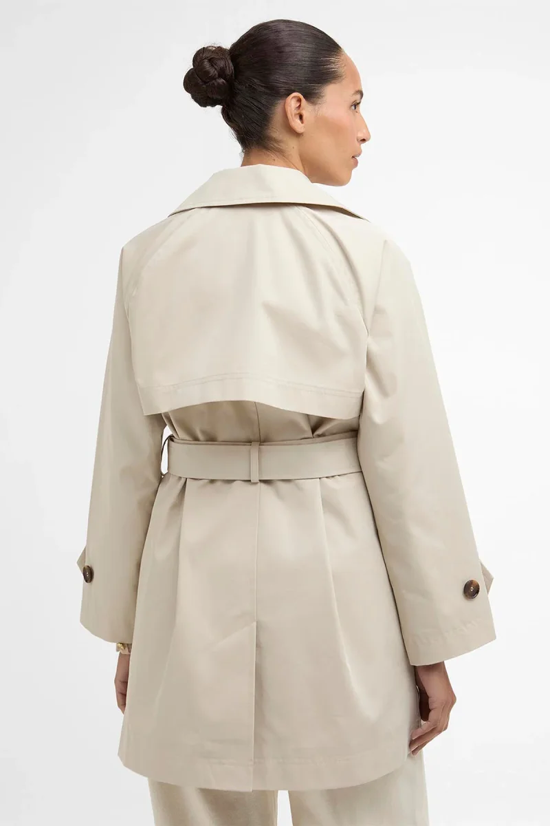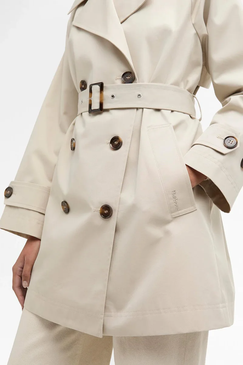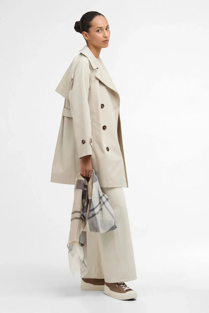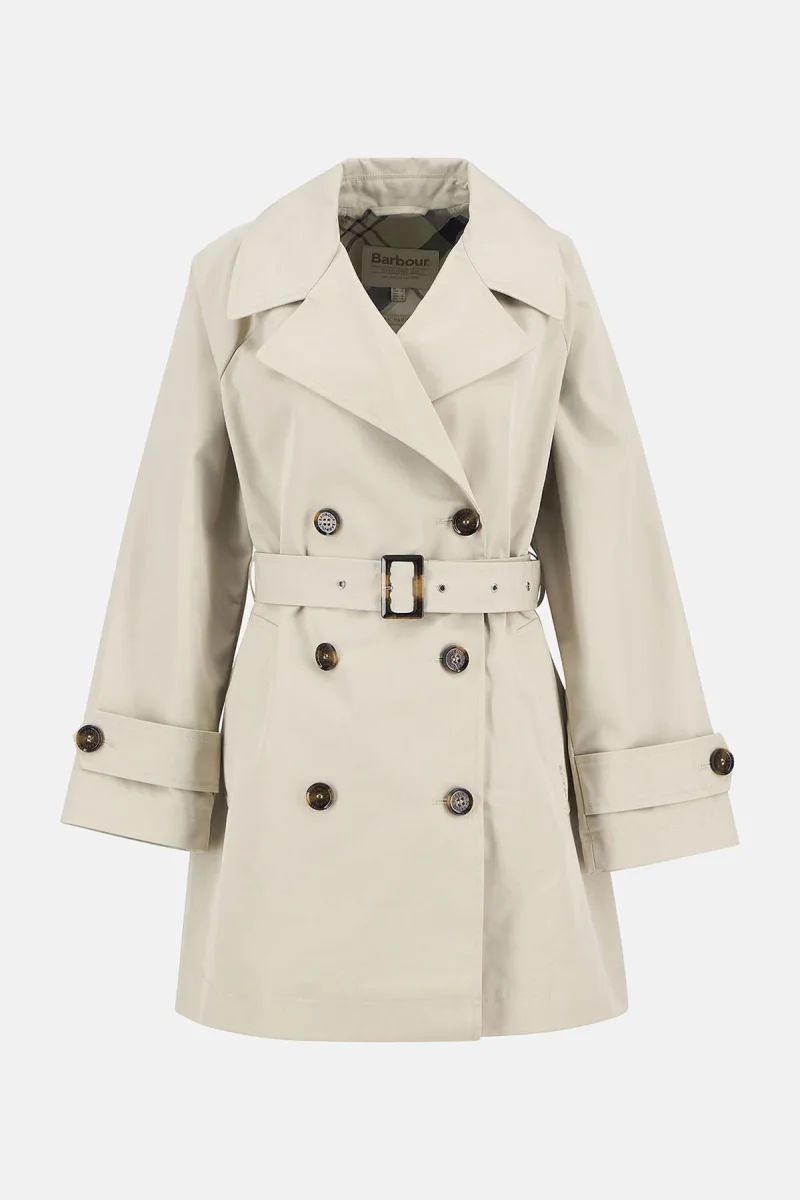 Un capospalla classico immancabile nel guardaroba, il trench antipioggia Adare di Barbour coniuga alla perfezione eleganza senza tempo e funzionalità moderna. La silhouette corta a doppio petto è impreziosita da bottoni in finto corno sulle finiture e sui cinturini dei polsini, mentre la cintura in vita in tessuto con fibbia in finto corno assicura una vestibilità leggermente aderente che esalta la figura. Rifinito da dettagli in sbieco in tartan sul retro del collo, questo trench coniuga alla perfezione heritage artigianale e stile contemporaneo, risultando quindi adatto da sfoggiare in qualsiasi stagione.