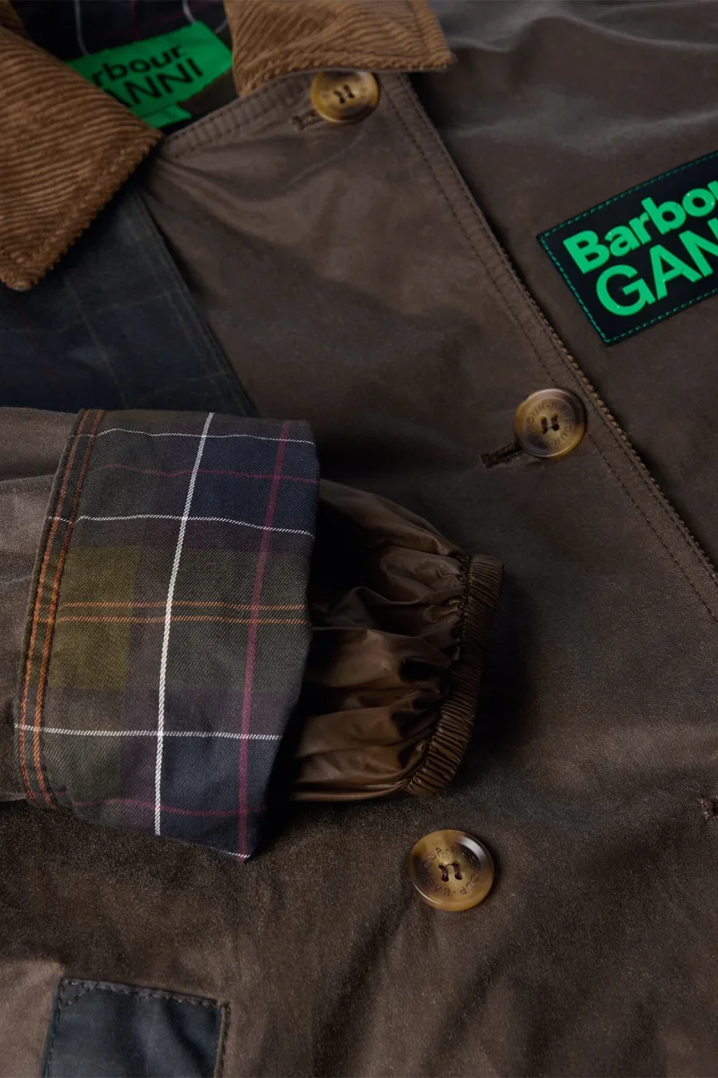 Giunta ormai alla terza edizione, la collaborazione Barbour x GANNI incarna perfettamente i valori di entrambi i brand per quanto riguarda lo stile, la praticità e la resistenza nel tempo. Questa collezione, caratterizzata dagli inconfondibili tessuti cerati e dalle finiture in tartan di Barbour, rappresenta alla perfezione l’heritage del brand ispirato alla campagna inglese, a cui si aggiunge il tocco giocoso di GANNI, brand scandinavo nato a Copenhagen. I vistosi elementi tipici di GANNI, presenti su giacche cerate, trench, sciarpe, borse tote e altri accessori di Barbour, fanno di questa collezione una celebrazione intramontabile dell’artigianalità e della tradizione.