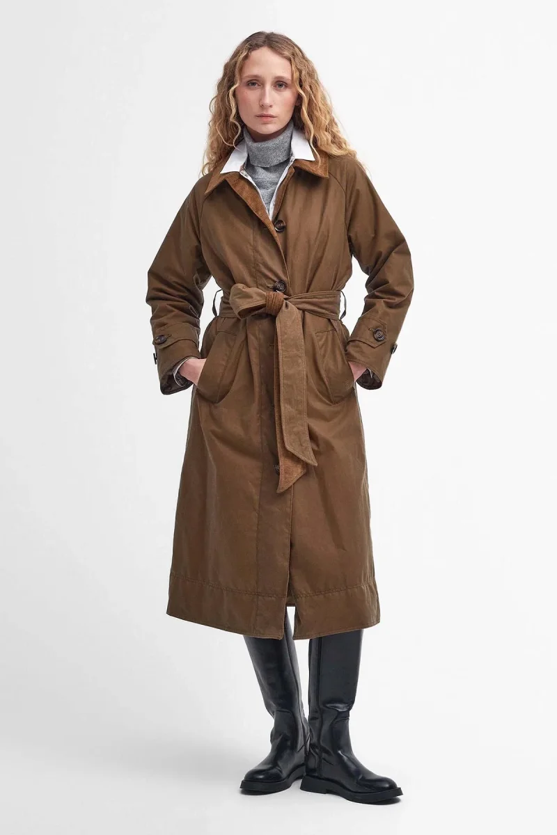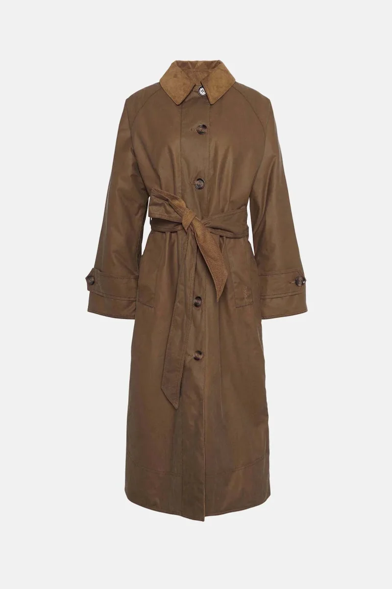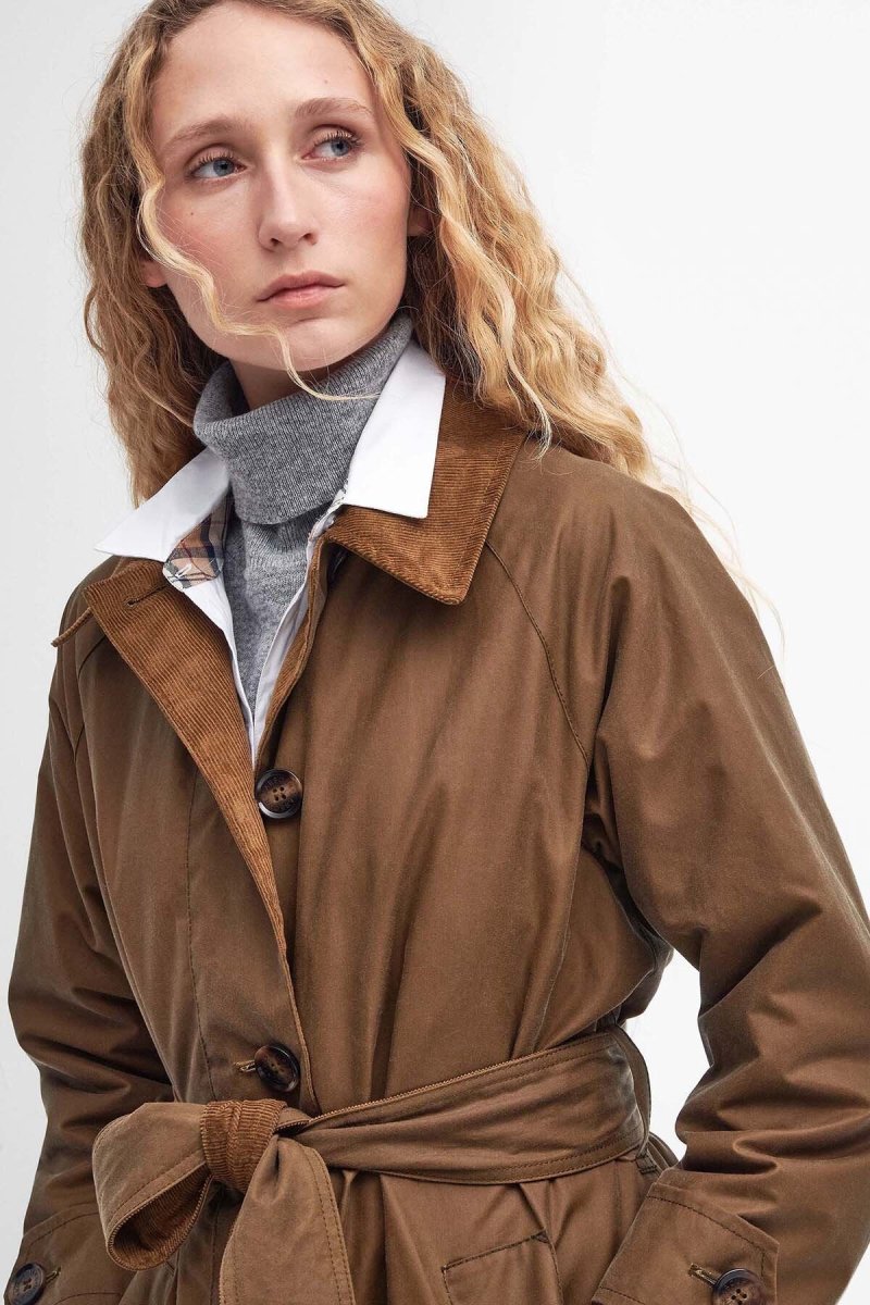 Aggiorna la tua collezione di giacche cerate con un capo dallo stile contemporaneo: il trench cerato Marianne di Barbour. Questa rivisitazione in chiave moderna del nostro modello classico è realizzata in tessuto isolante leggero ed è dotata di una cintura da annodare in vita che consente di regolarne la vestibilità. Caratterizzato da un colletto a contrasto in velluto a coste e da una fodera in tartan Barbour, questo capo è rifinito da una chiusura frontale con bottoni in corno che conferisce un look senza tempo.