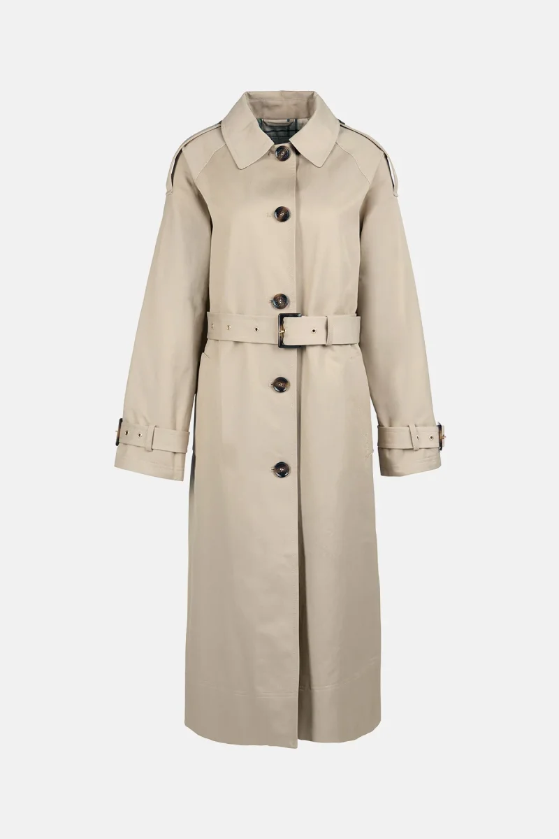 Il trench impermeabile Marie di Barbour è un elegante capospalla in tessuto opaco impermeabile, pensato proprio per garantirti protezione extra dalle intemperie quando il tempo diventa imprevedibile. Le spalline oversize sono un tocco di raffinatezza che unisce uno stile moderno a dettagli intramontabili, come la cintura in vita, le maniche a polsino e le tasche a filetto.