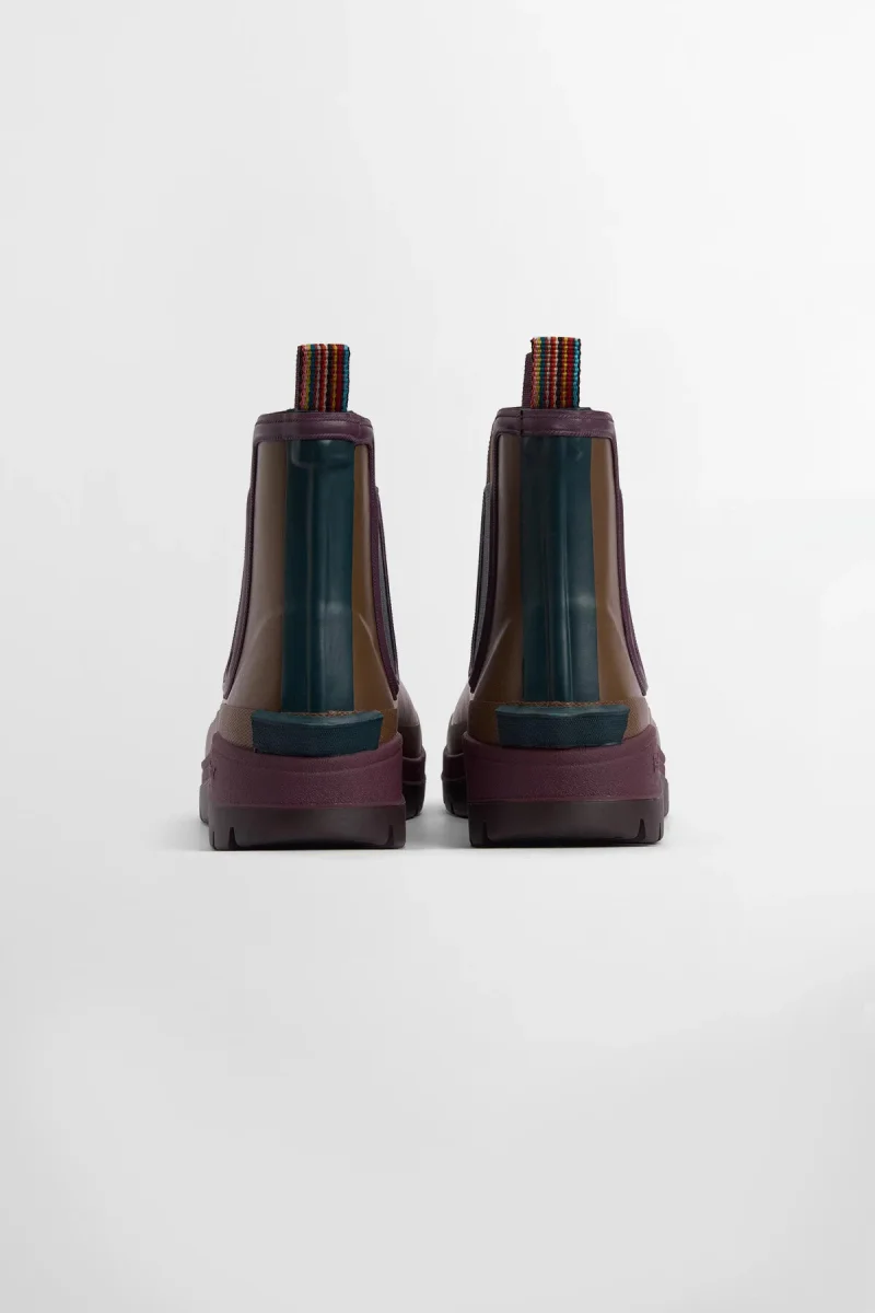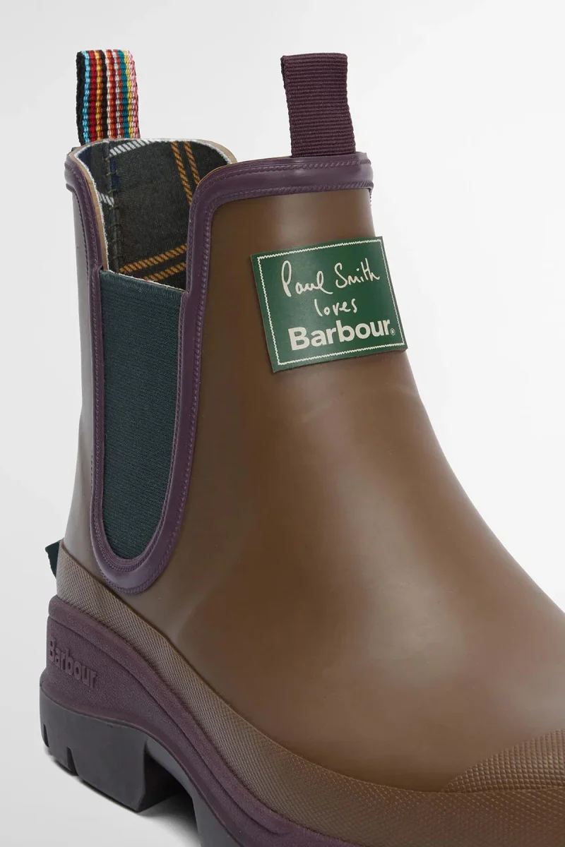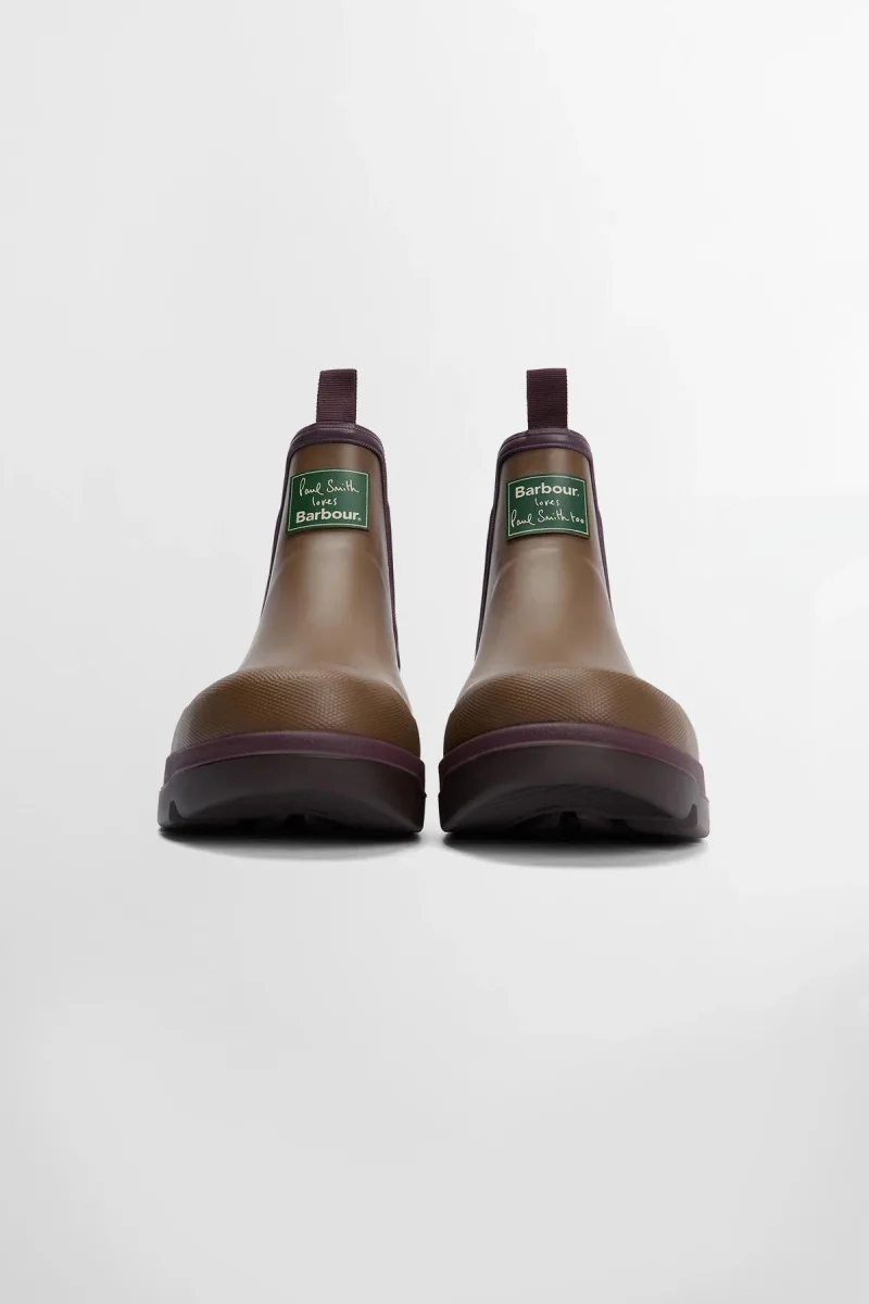 Questa versione moderna dei classici stivaletti Chelsea è caratterizzata da una robusta struttura in gomma, risultando quindi perfetta per affrontare con disinvoltura le passeggiate nel fango in campagna o le strade bagnate dalla pioggia in città. Ma a rendere davvero unici questi tronchetti è l’attenzione ai dettagli che da sempre contraddistingue entrambi i brand. La gomma vulcanizzata assicura elevate prestazioni a lungo termine, mentre l’inconfondibile doppio logo in gomma sulla parte anteriore della calzatura strizza l’occhio a questa entusiasmante collezione. Ovviamente, non sarebbero un articolo Paul Smith senza l’iconico tocco di colore: la linguetta posteriore è infatti impreziosita dalle inconfondibili righe multicolor del brand, offrendo quell’equilibrio tra stile giocoso e funzionalità perfetto per chi vuole esprimere la propria personalità con un look unico nel suo genere.