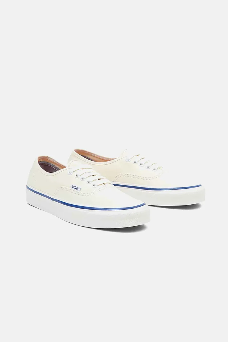 Questa stagione, la collezione Vans Anaheim Factory celebra il lancio delle Authentic con un motivo a tema nautico. Le Authentic sono state uno dei primi modelli indossati dagli skater quando Vans non era ancora un marchio popolare. Tornano nella rara versione Authentic 44 Deck DX con suola blu e un design scanalato con sottili fessure in gomma, progettato per garantire maggiore aderenza in condizioni di bagnato. Il modello richiama il classico stile da barca originale.