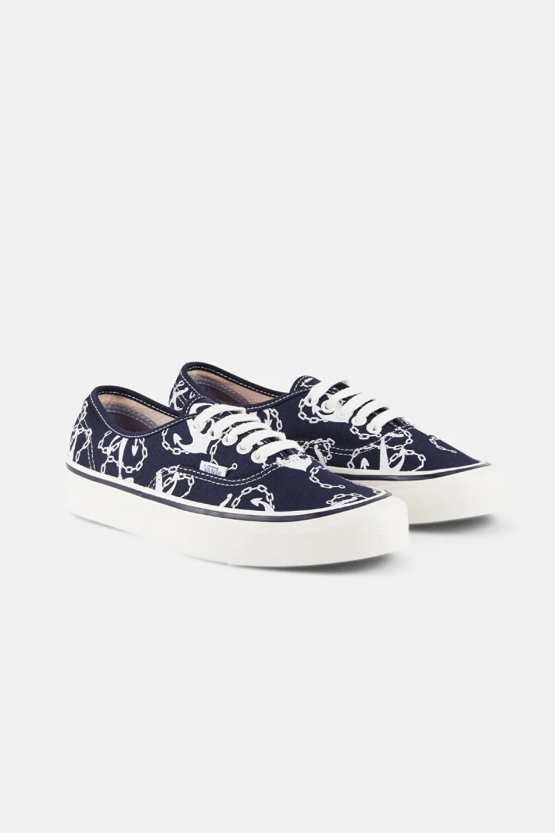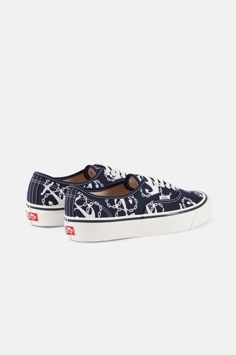 Questa stagione, la collezione Vans Anaheim Factory celebra il lancio delle Authentic con un motivo a tema nautico. Le Authentic sono state uno dei primi modelli indossati dagli skater quando Vans non era ancora un marchio popolare. Tornano nella rara versione Authentic 44 Deck DX con suola blu e un design scanalato con sottili fessure in gomma, progettato per garantire maggiore aderenza in condizioni di bagnato. Il modello richiama il classico stile da barca originale.