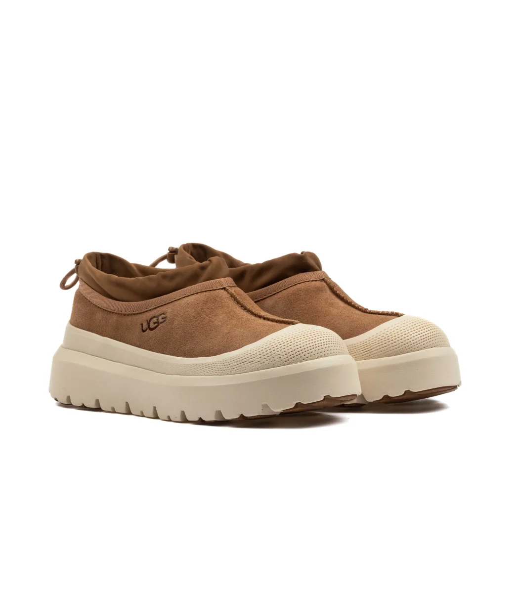 Heritage UGG, spirito outdoor. Le UGG Tasman Weather Hybrid Mustard combinano il design iconico della classica slip-on con caratteristiche tecniche pensate per affrontare l’esterno. La tomaia è realizzata in materiale impermeabile con finitura gommata, perfetta per resistere alle intemperie con stile. L’interno è foderato in morbido pelo UGGplush™, per una sensazione di calore e comfort assoluto. La suola chunky in EVA e SugarSole™ garantisce leggerezza e grip, mentre il colore mustard aggiunge un tocco originale e contemporaneo a un modello versatile, da indossare in città o nel tempo libero. Ideali per chi cerca slip-on UGG impermeabili da uomo, comode, resistenti e con un look ibrido tra urban e funzionale.
