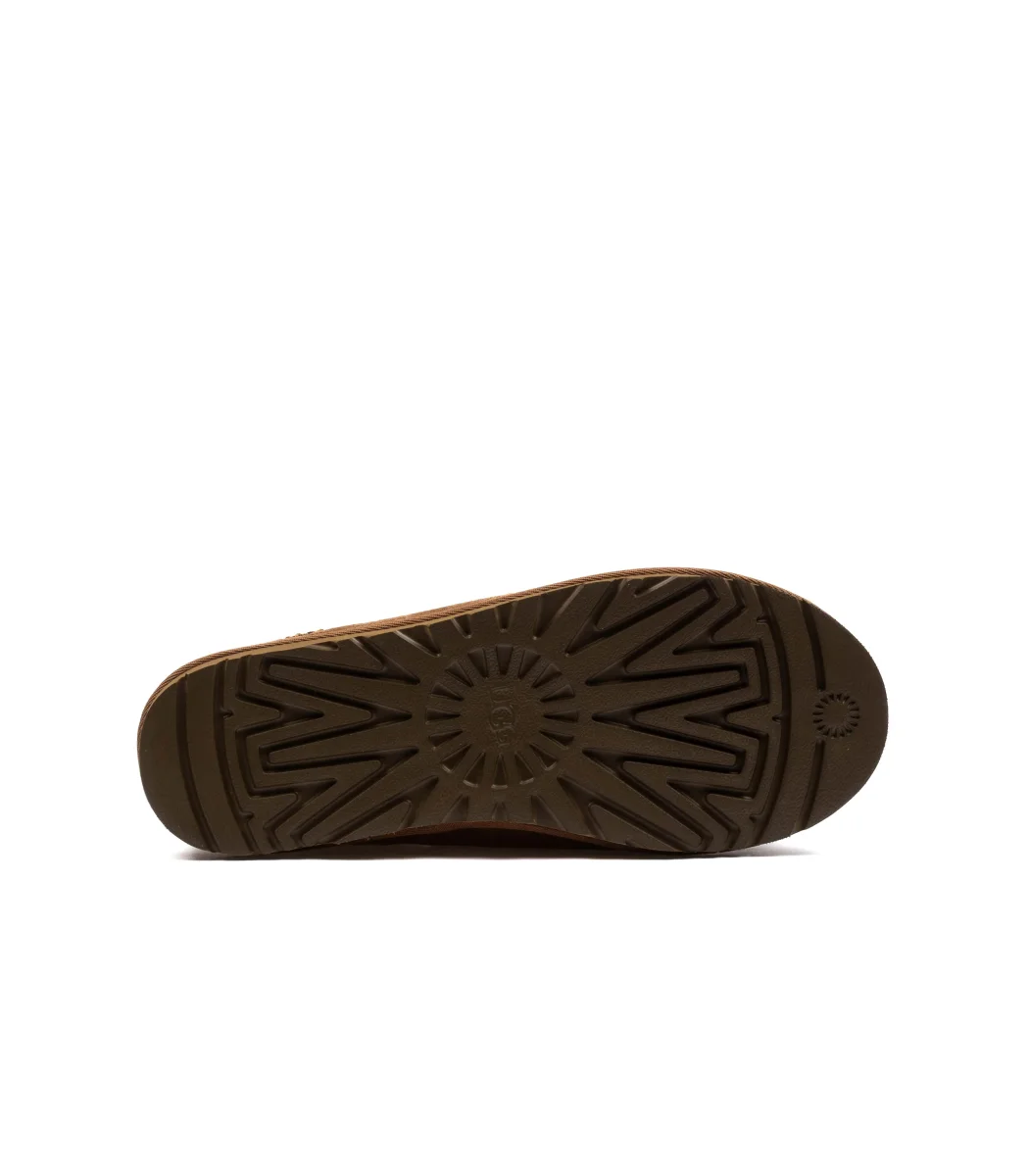 Le UGG Tasman II Suede Chestnut da uomo reinterpretano l’iconico stile UGG con un design casual e versatile che unisce comfort e tendenza. Realizzate in morbida pelle scamosciata color chestnut, sono rifinite con il caratteristico ricamo Tasman sul collarino e foderate in lana UGGplush™ riciclata, che assicura calore e traspirabilità in ogni stagione. La suola Treadlite by UGG™ garantisce leggerezza, durata e trazione, rendendole perfette sia per l’uso indoor come pantofola premium, sia outdoor come slipper dal carattere urban. Uno dei modelli più ricercati della stagione, simbolo dello stile rilassato californiano firmato UGG. Codice: 1174671-CHE