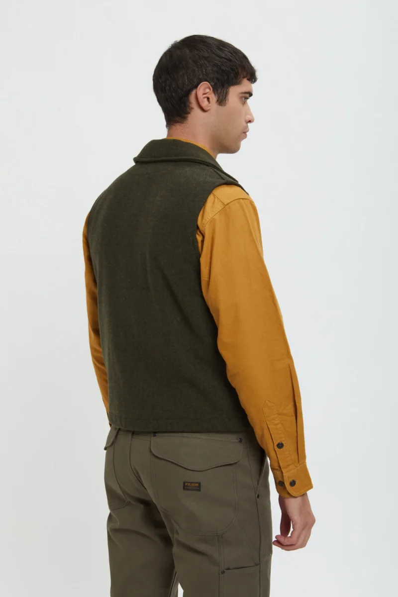 Questo gilet dallo stile intramontabile è traspirante quando fa più fresco mentre, se indossato sotto una giacca quando il clima è più rigido, tiene al caldo. Realizzato a Seattle con la nostra iconica lana Mackinaw, è antivento e isola anche da bagnato. La lana Mackinaw è nota per la sua notevole resistenza, che consente di realizzare capi da tramandare di generazione in generazione.
