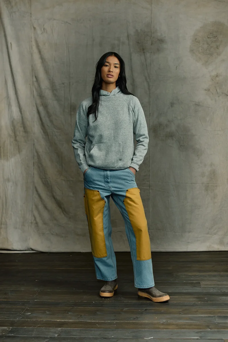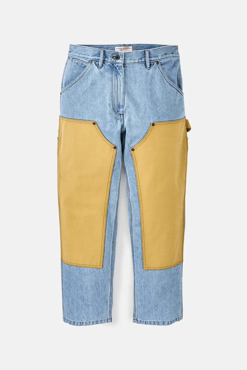 I nostri classici jeans da lavoro sono realizzati in denim resistente e di prima qualità per mantenere un’affidabilità duratura nel tempo. Ormai affermatosi come un must-have irrinunciabile, il denim ha iniziato a diventare un tessuto di fiducia per minatori e allevatori alla fine del XIX secolo. Il lato anteriore della gamba è rinforzato con uno strato del nostro leggendario Tin Cloth per ottenere una protezione extra. Le cuciture ad ago triplo nei punti più importanti e i rivetti nei punti più sollecitati ne estendono la durata. Le tasche presentano un’apertura ampia che facilita l’accesso, mentre le gambe sono dotate di tasche per gli attrezzi e di un passante per il martello. Chiusura in vita con zip e bottone con gambo in metallo.