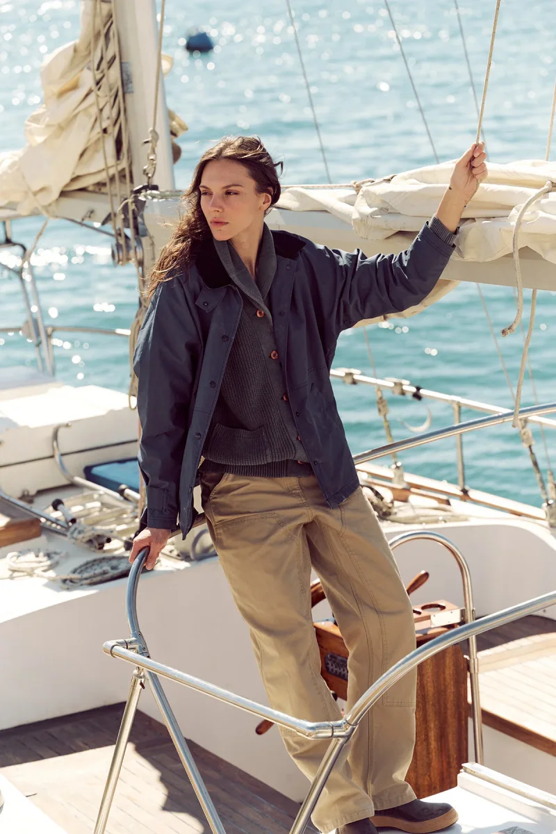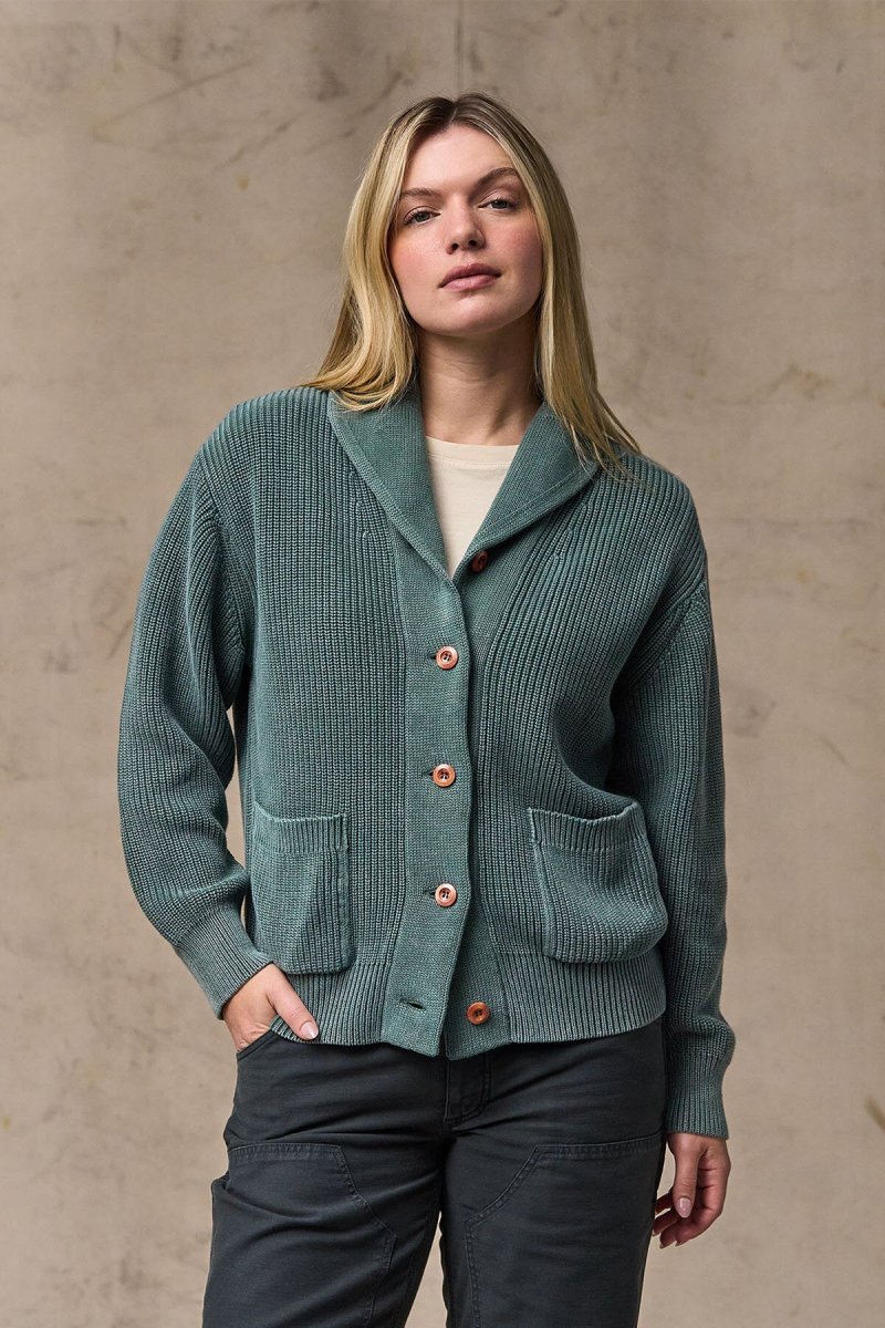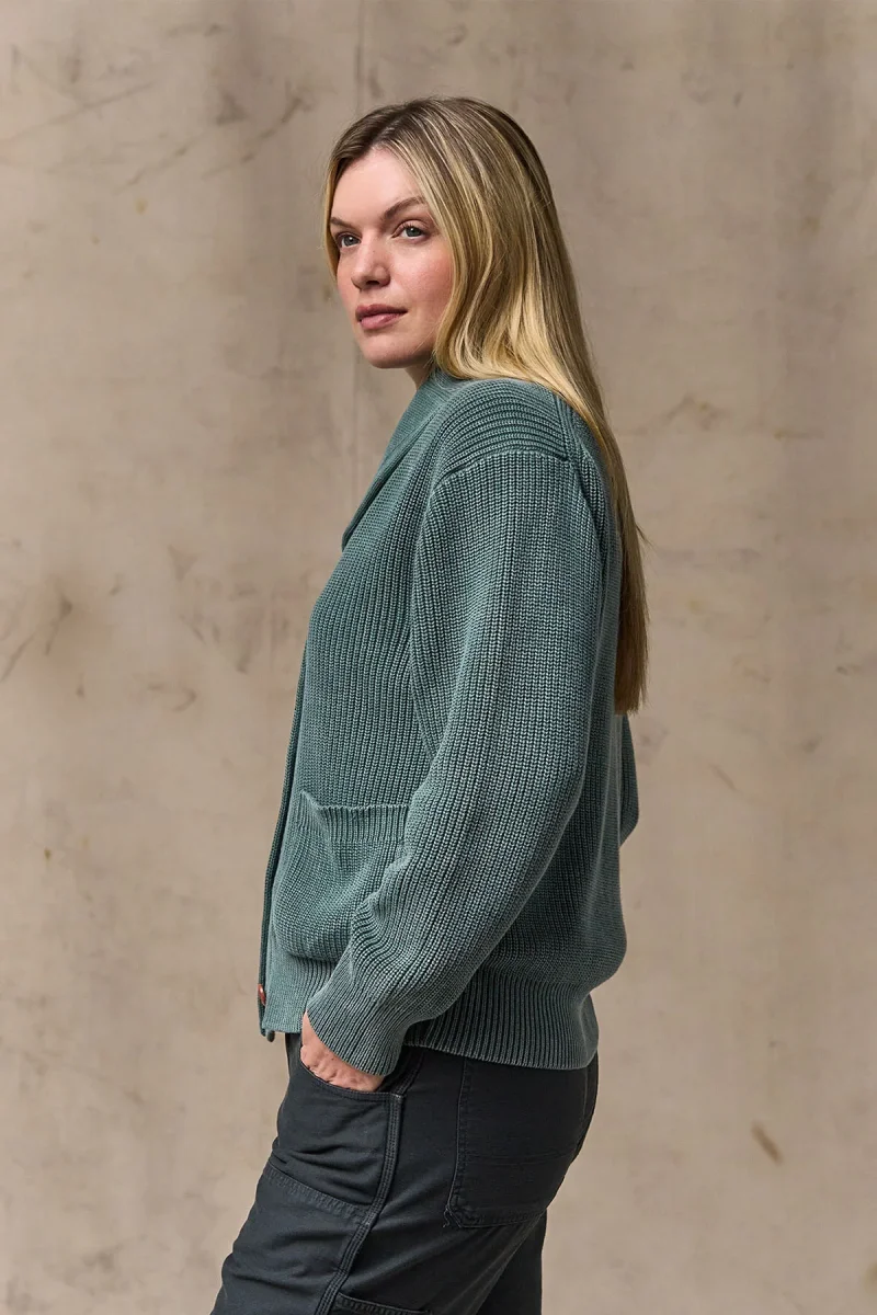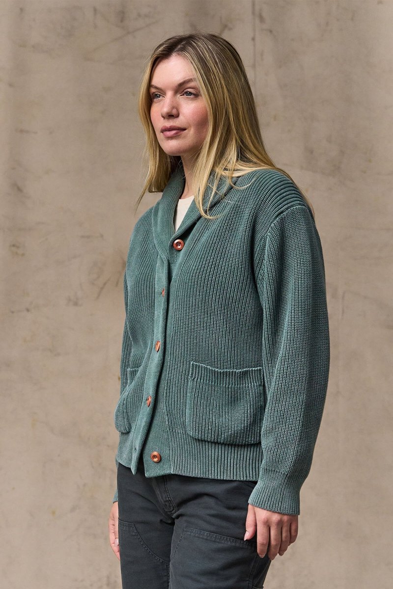 Il cardigan da donna in cotone con collo sciallato è un capo affidabile pensato per essere indossato nelle fresche giornate primaverili. Il modello, realizzato con filati di cotone a 4 strati di calibro 7, è spesso e strutturato senza risultare pesante. Il risultato è un tessuto liscio e resistente che mantiene la forma e offre calore e traspirabilità quando le temperature calano.