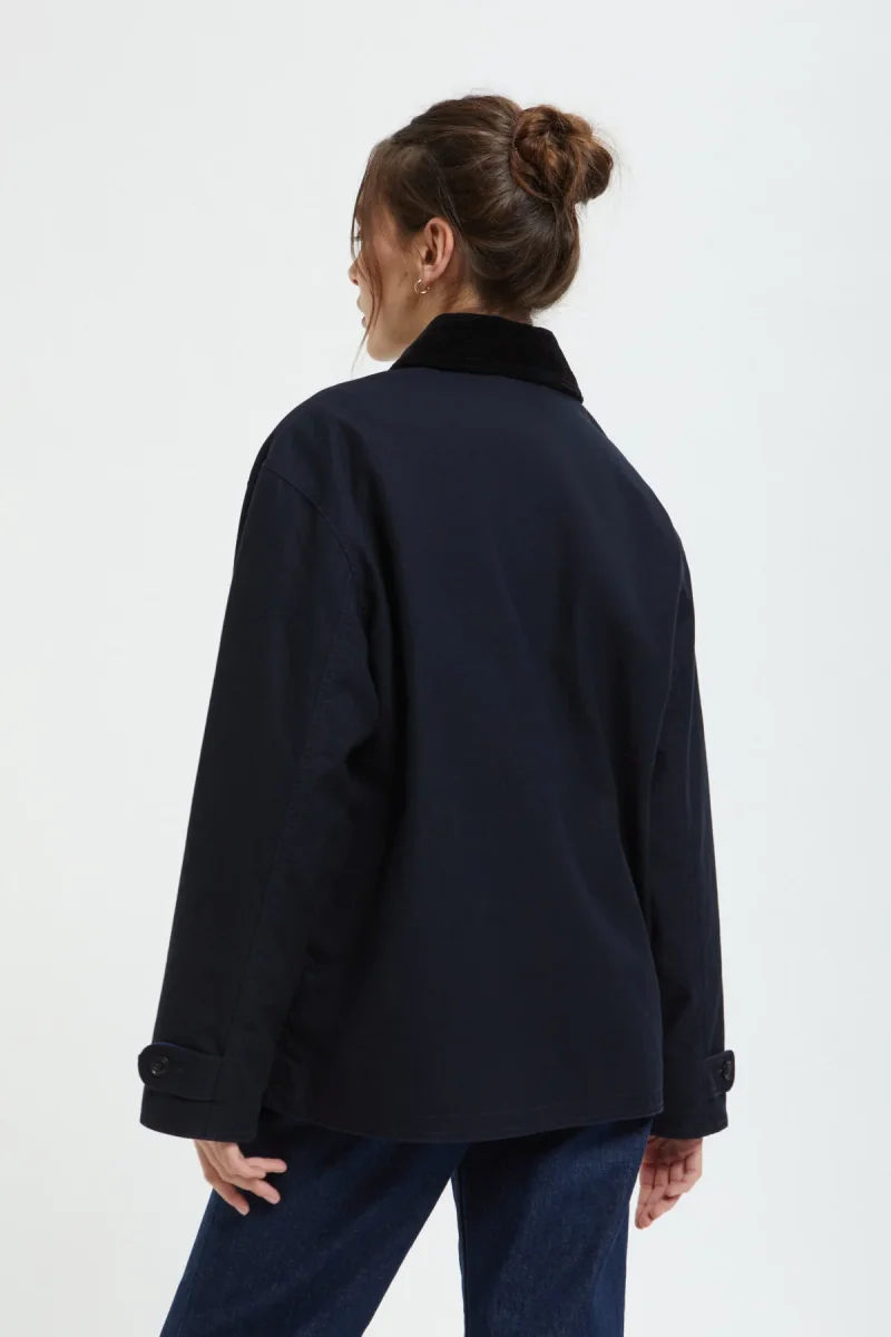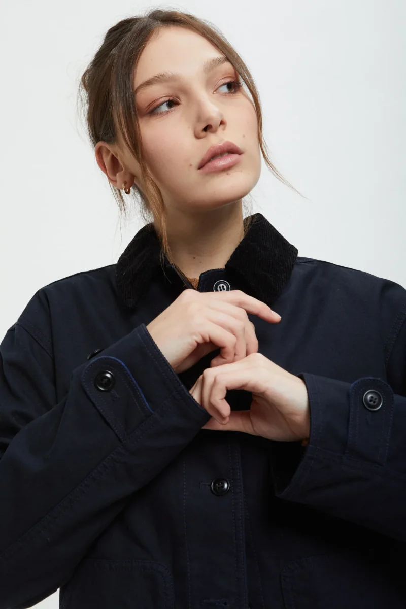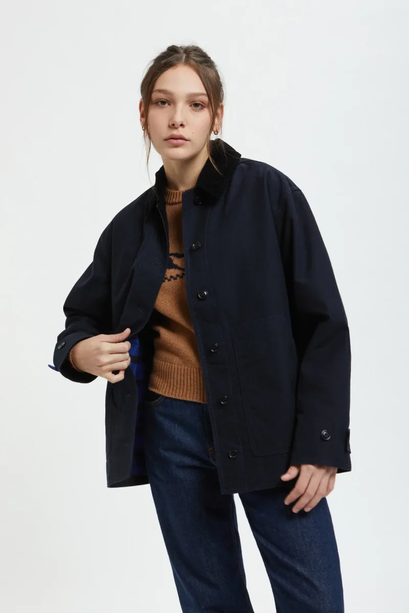 Un capo rilassato per ogni cammino della vita, questa giacca combina semplicità di design, costruzione esperta e materiali iconici. È realizzata con Tin Cloth a finitura asciutta, la versione non cerata del nostro tessuto caratteristico, famoso per la sua durata. La calda fodera in flanella di cotone è spazzolata per morbidezza e comfort. Chiusura frontale con bottoni e polsini regolabili. Colletto foderato in velluto a coste.