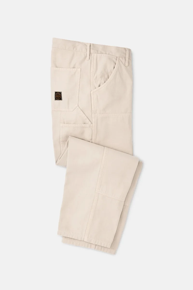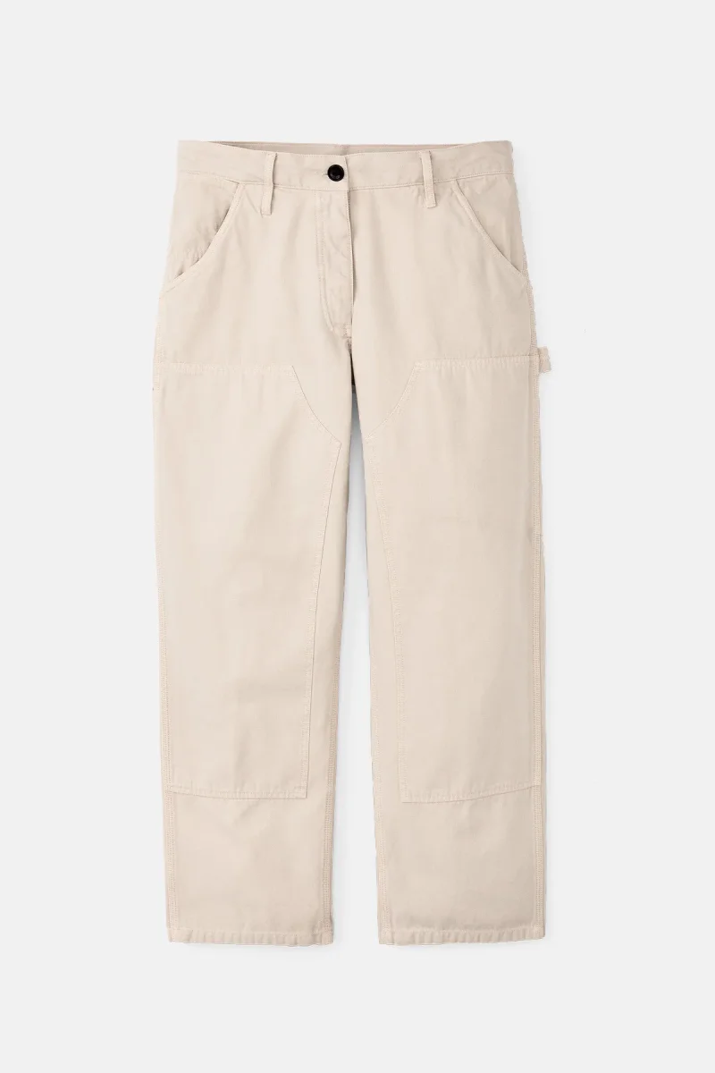 Questi pantaloni da lavoro sono ideali per attività che richiedono un ulteriore strato di protezione. La parte anteriore è rinforzata con un doppio strato di cotone di raso rovescio resistente. Questo tessuto si ispira a quello dei pantaloni cargo degli anni ’60 e ha una comprovata capacità di resistere alle abrasioni e alle attività più impegnative. La vestibilità del capo è comoda per offrire una grande libertà di movimento. Il passante per martello e le tasche sui lati delle gambe consentono di tenere gli attrezzi sempre a portata di mano. Cuciture ad ago triplo per una maggiore resistenza.