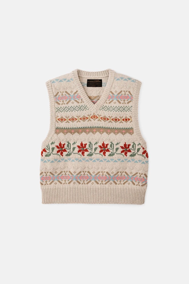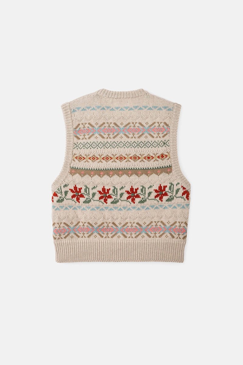 Il nostro gilet in cotone dalla lavorazione jacquard è un capo comodissimo che regala un calore impareggiabile. Realizzato al 100% in cotone biologico, questo modello è ideale per riscaldarti nelle mattine più fresche. I filati di spessore 8 conferiscono al capo un aspetto più “rustico”. Il motivo floreale con lavorazione jacquard è realizzato con la stessa meticolosa attenzione ai dettagli che si riscontra nella lavorazione Fair Isle. Grazia alla scollatura a V dall’ingombro minimo, il gilet si può comodamente indossare al di sopra di camicie con colletto. Completa il tutto la finitura a coste su giromanica e colletto.