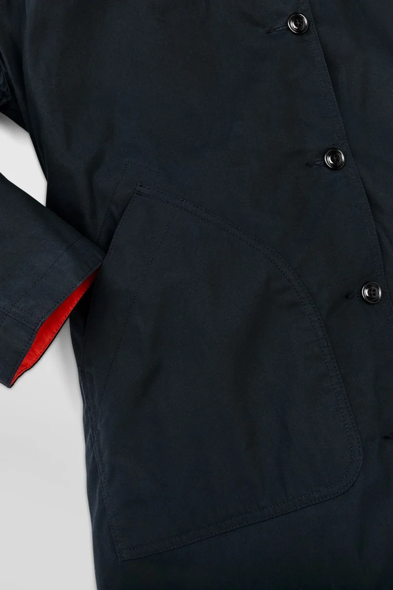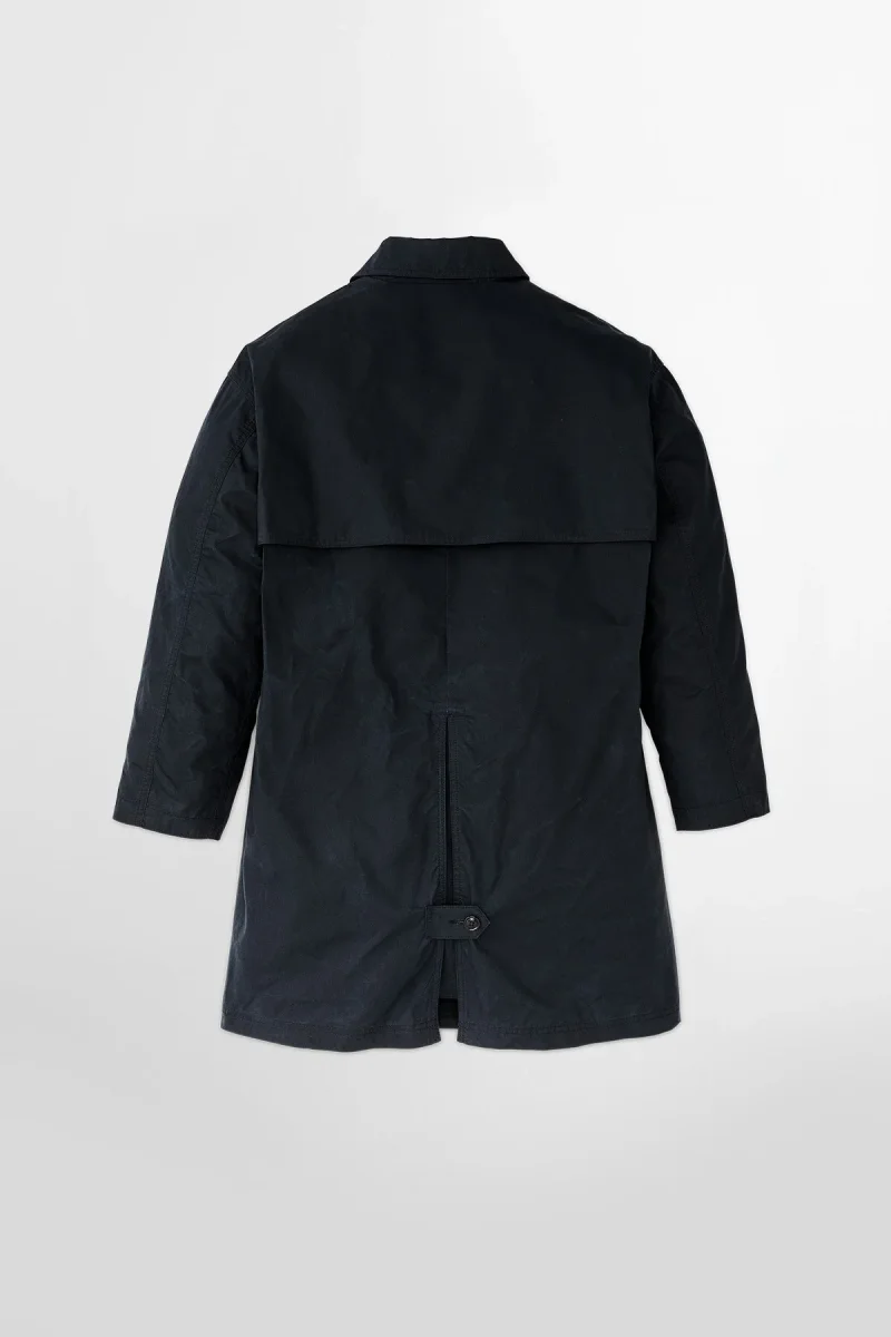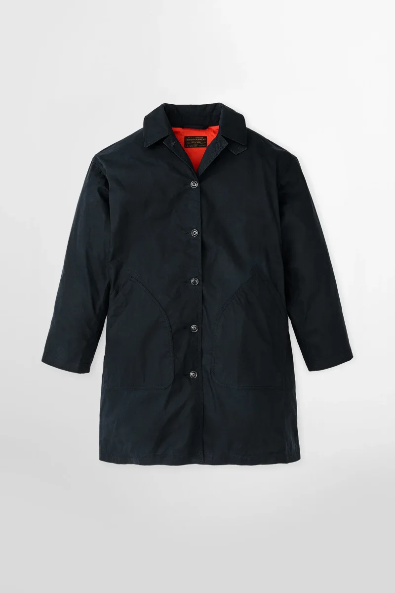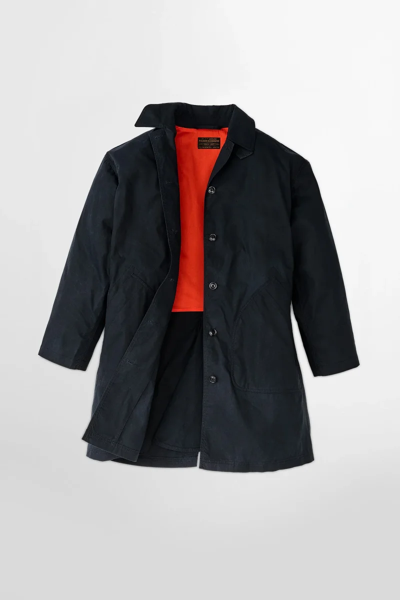 Questo impermeabile offre una protezione ottimale in condizioni di bagnato grazie alla maggiore coprenza. Il modello è realizzato con il tessuto Ranger prodotto dal leggendario marchio inglese British Millerain, che da sei generazioni lavora sapientemente il cotone cerato. Questo leggero tessuto di cotone fonde alla perfezione l’heritage della tela cerata e la comodità del lavaggio in lavatrice. Il design classico è caratterizzato da una chiusura frontale con bottoni e da un cinturino sottogola per chiudere il colletto. Le ampie tasche anteriori sono ispirate ai cappotti Field vintage di Filson. Modello completamente foderato.