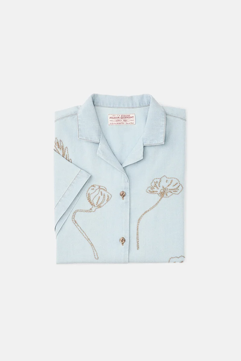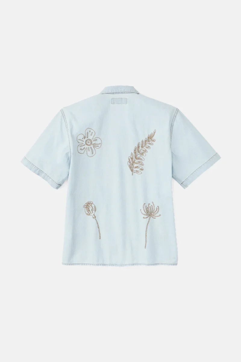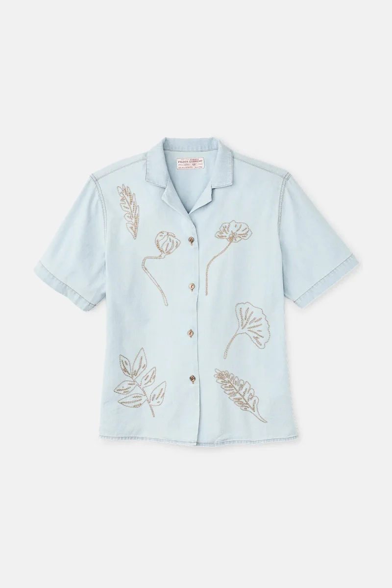 Caratterizzata dall’inconfondibile colletto morbido e dall’orlo dritto, questa classica camicia alla cubana è assolutamente irrinunciabile se vuoi godere di un comfort ottimale durante la bella stagione. Il leggero tessuto chambray è noto per la resistenza e il comfort elevato che offre. L’orlo dritto presenta spacchi laterali per offrire maggiore libertà di movimento. Il motivo floreale ricamato aggiunge al capo un tocco vintage. Chiusura frontale con bottoni.