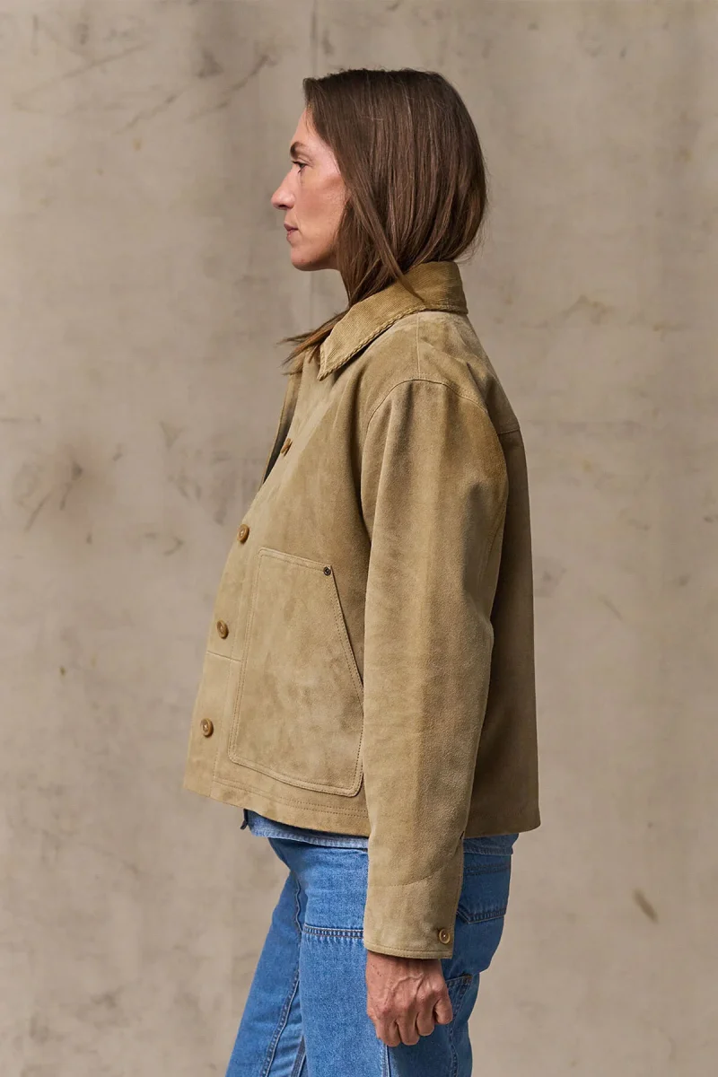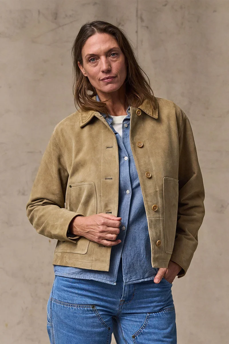 La giacca corta scamosciata da campagna offre il connubio perfetto di robustezza e materiali di alta qualità. Realizzata in robusta pelle di capra scamosciata morbida dal finish opaco, regala un vero tocco di eleganza a una silhouette resistente. La pelle è naturalmente durevole ed elastica ed è progettata per resistere ad anni di utilizzo sviluppando al contempo una patina unica.