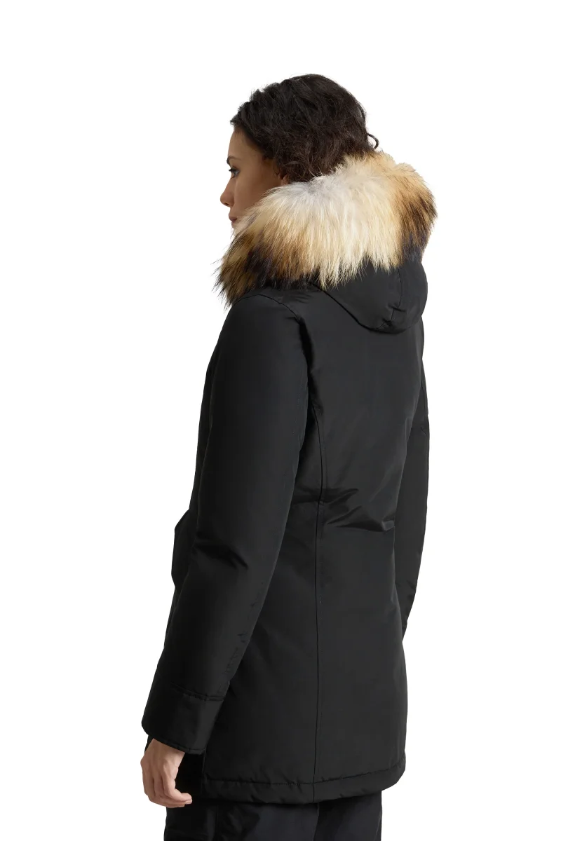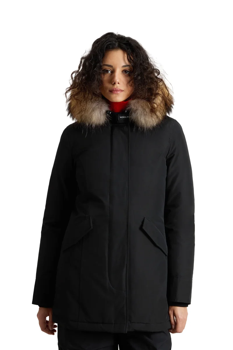 Il Woolrich Arctic Raccoon Parka nero da donna è un’icona dell’outerwear femminile, pensata per garantire calore e protezione anche nelle giornate più fredde. Realizzato in tessuto resistente a vento e pioggia e imbottito in piuma d’anatra, assicura isolamento termico e leggerezza, perfetto per affrontare l’inverno in città e outdoor. Il design intramontabile è arricchito dal cappuccio con bordo in pelliccia di procione, staccabile per un look versatile, e dalle tasche frontali funzionali con patta. Un piumino invernale da donna che unisce tradizione Woolrich e stile contemporaneo. SKU: CFWWOU0538FRUT0001BLK