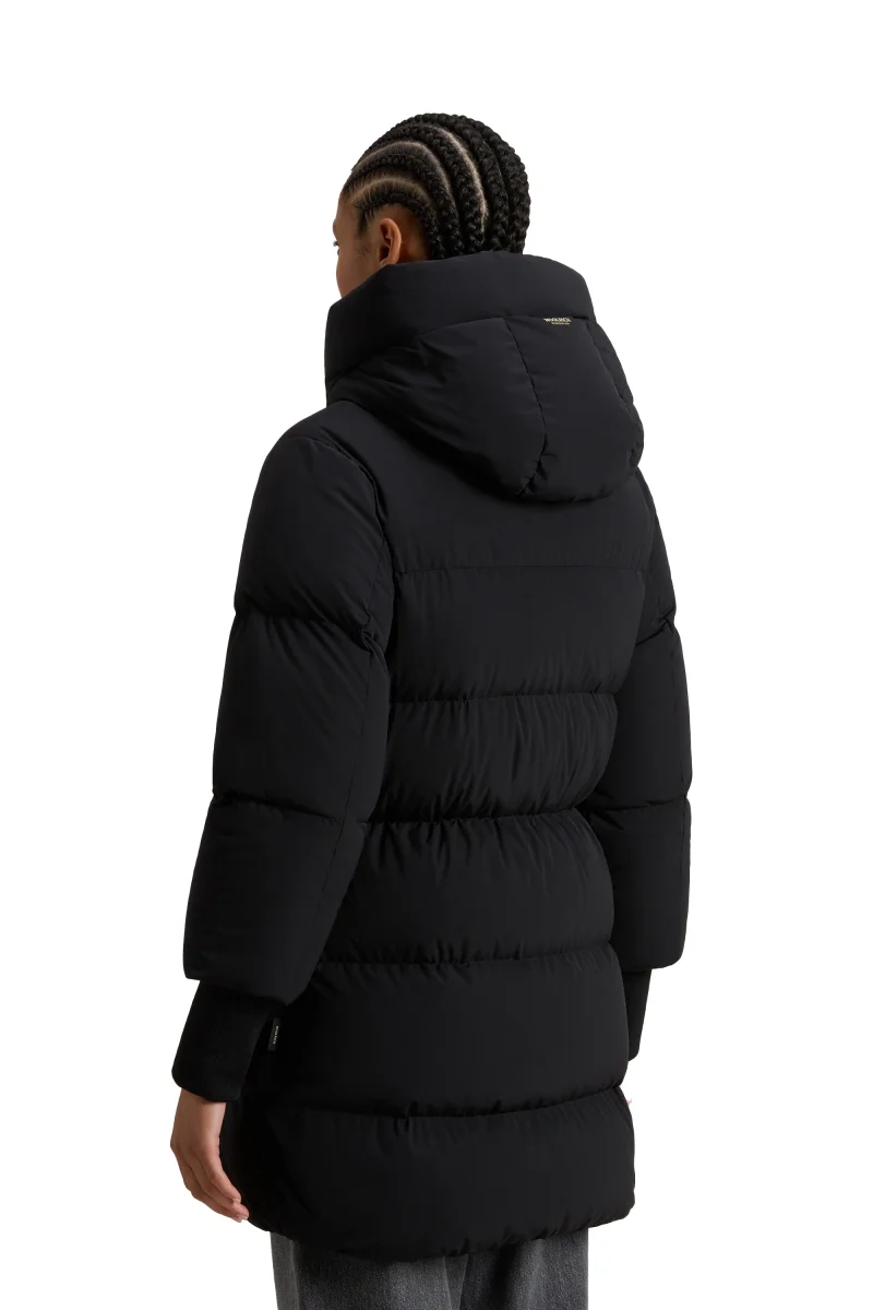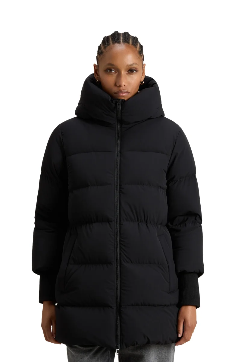 Il Woolrich Cloud Madison Coat nero da donna è un cappotto imbottito elegante e funzionale, perfetto per affrontare l’inverno con comfort e stile. Realizzato in tessuto resistente a vento e pioggia e imbottito in piuma leggera ad alto potere isolante, garantisce protezione e calore senza rinunciare alla leggerezza. Il design sofisticato e minimal è arricchito dal cappuccio regolabile, dalle linee morbide e dalla chiusura frontale con zip coperta da patta. Un capo versatile e contemporaneo che unisce la tradizione Woolrich alla modernità del guardaroba urbano femminile. SKU: CFWWOU2090FRUT3107100