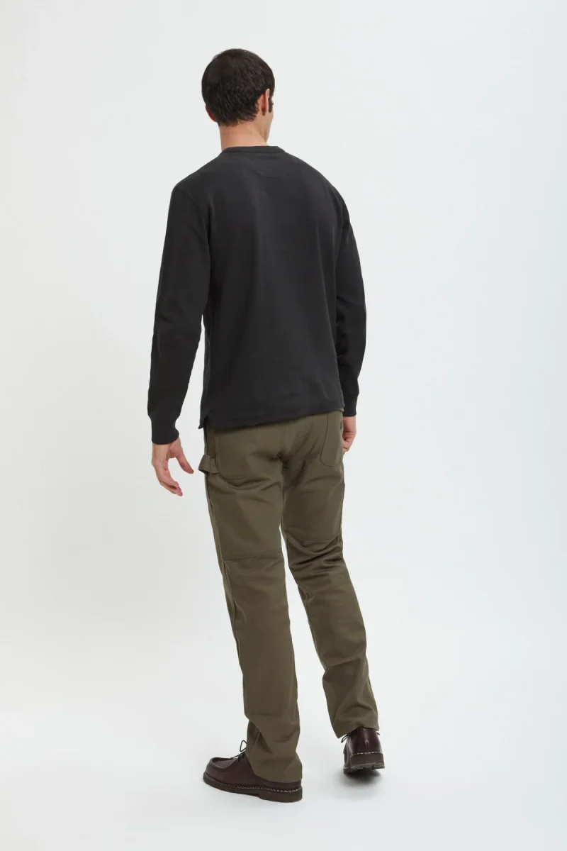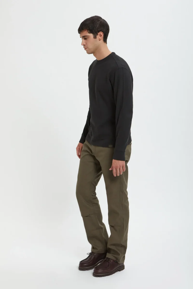 Con cuciture ad ago triplo dove serve, i nostri pantaloni Worksmith a doppio strato sono pensati per i lavori più duri. Due strati di tela robusta e resistente alle abrasioni ricoprono la seduta e la parte anteriore della gamba. È possibile inserire delle ginocchiere tra gli strati anteriori per lavorare su superfici dure o tetti. La vestibilità è rilassata per agevolare i movimenti e il soffietto sul cavallo offre maggiore volume e comfort. Sono presenti due tasche posteriori sovrapposte su ciascun lato, una tasca nascosta per le monete nella cintura e tasche all’americana di facile accesso sul davanti. Sulla gamba destra è presente una tasca per gli utensili a doppio scomparto e sulla sinistra un passante per il martello. Rivetti di rinforzo nei punti sottoposti a sollecitazioni. Sette passanti impediscono il cedimento della vita. Chiusura in vita con zip e bottone con gambo in metallo.