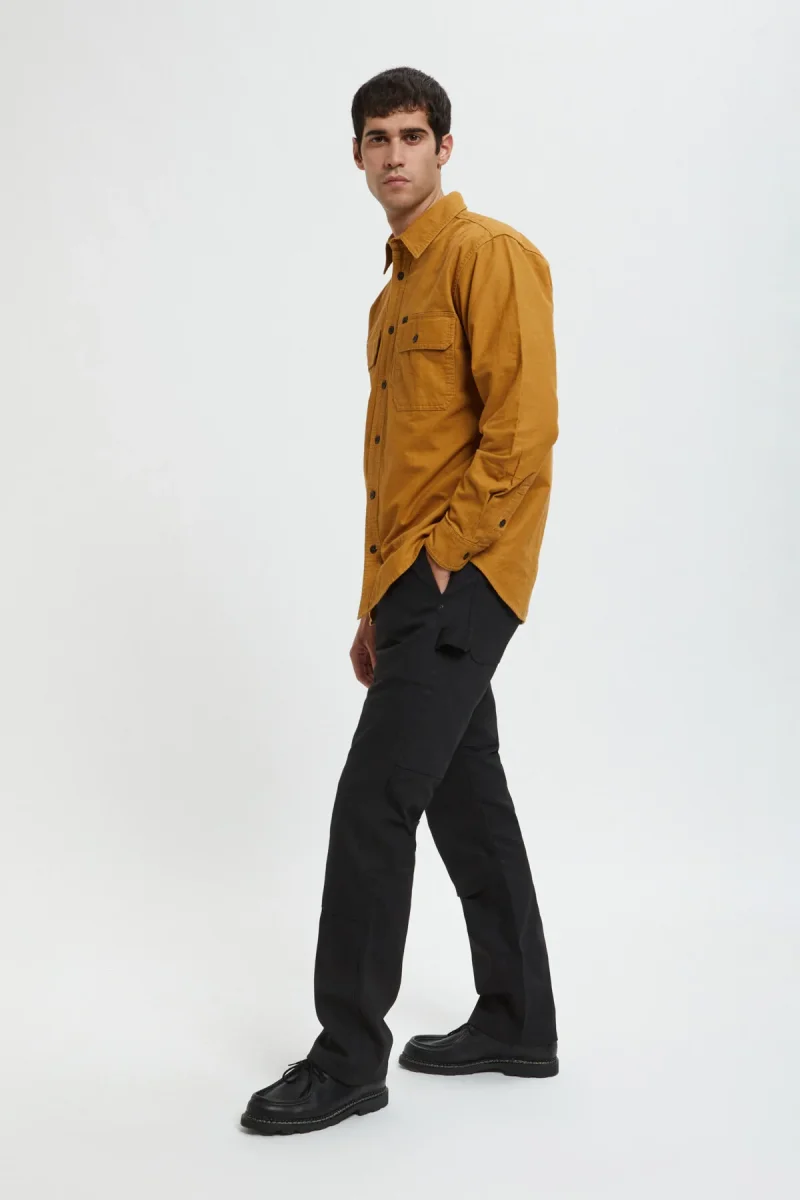 Con cuciture ad ago triplo dove serve, i nostri pantaloni Worksmith a doppio strato sono pensati per i lavori più duri. Due strati di tela robusta e resistente alle abrasioni ricoprono la seduta e la parte anteriore della gamba. È possibile inserire delle ginocchiere tra gli strati anteriori per lavorare su superfici dure o tetti. La vestibilità è rilassata per agevolare i movimenti e il soffietto sul cavallo offre maggiore volume e comfort. Sono presenti due tasche posteriori sovrapposte su ciascun lato, una tasca nascosta per le monete nella cintura e tasche all’americana di facile accesso sul davanti. Sulla gamba destra è presente una tasca per gli utensili a doppio scomparto e sulla sinistra un passante per il martello. Rivetti di rinforzo nei punti sottoposti a sollecitazioni. Sette passanti impediscono il cedimento della vita. Chiusura in vita con zip e bottone con gambo in metallo.