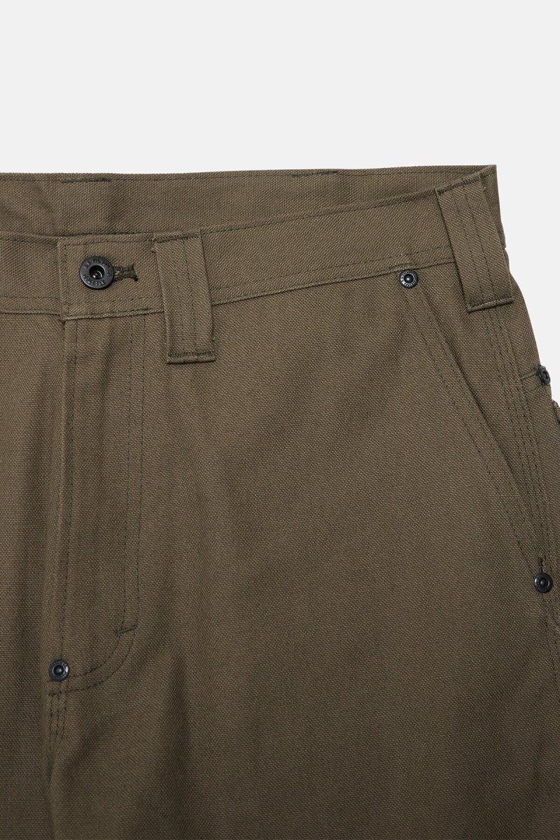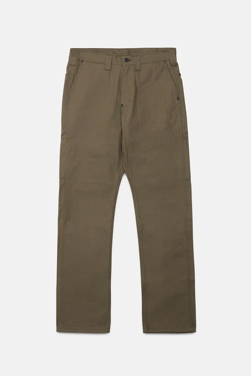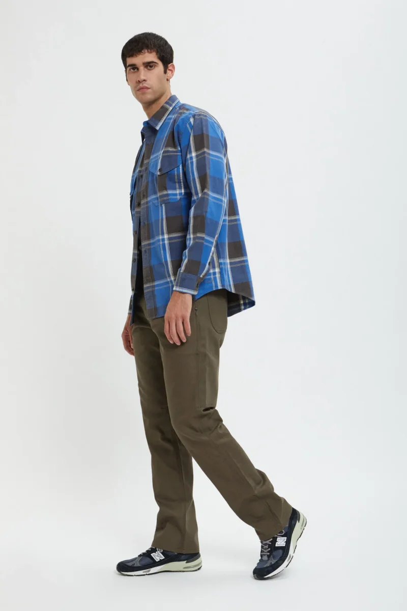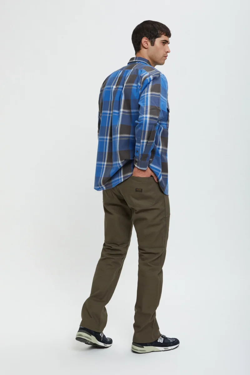 I nostri robusti pantaloni Worksmith sono realizzati in tela 100% cotone da 340 g, molto resistente alle abrasioni e agli strappi. La seduta è rinforzata con un secondo strato di tela per una maggiore resistenza. La vestibilità è comoda e rilassata, con un soffietto sul cavallo che regala volume, comfort e facilità di movimento. Sono presenti due tasche posteriori sovrapposte su ciascun lato, una tasca nascosta per le monete nella cintura e tasche all’americana di facile accesso sul davanti. Le cuciture più importanti sono ad ago triplo per garantire resistenza e i punti sottoposti a sollecitazioni sono rinforzati con dei rivetti. Il settimo passante per cintura extra-largo al centro della parte posteriore del capo impedisce il cedimento della vita. Chiusura in vita con bottone con gambo in metallo.