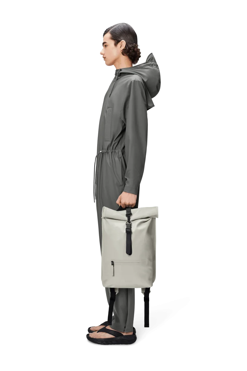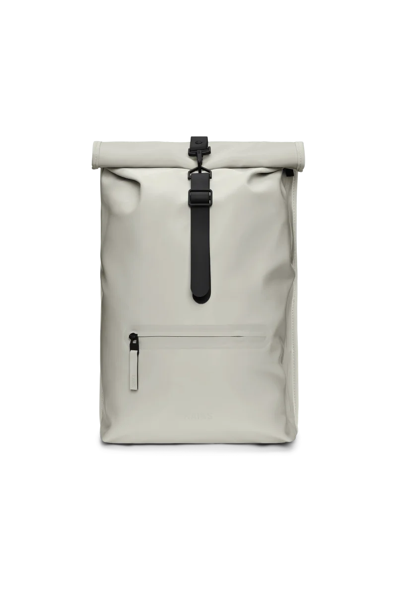Rains rolltop rucksack zaino grigio unisex. Il Rolltop di Rains è uno zaino con ispirazione dal mondo dei ciclisti, totalmente impermeabile. Questo pratico zaino dispone di una chiusura roll-top con una cinghia regolabile, ha una tasca frontale ed uno scomparto per laptop di facile accesso laterale e spallacci regolabili. Colore nero.
